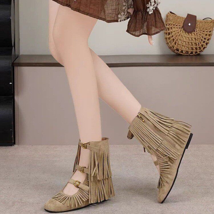 爆款时装凉靴夏季新款流苏内增高6cm时尚透气波西米亚夏天凉靴子