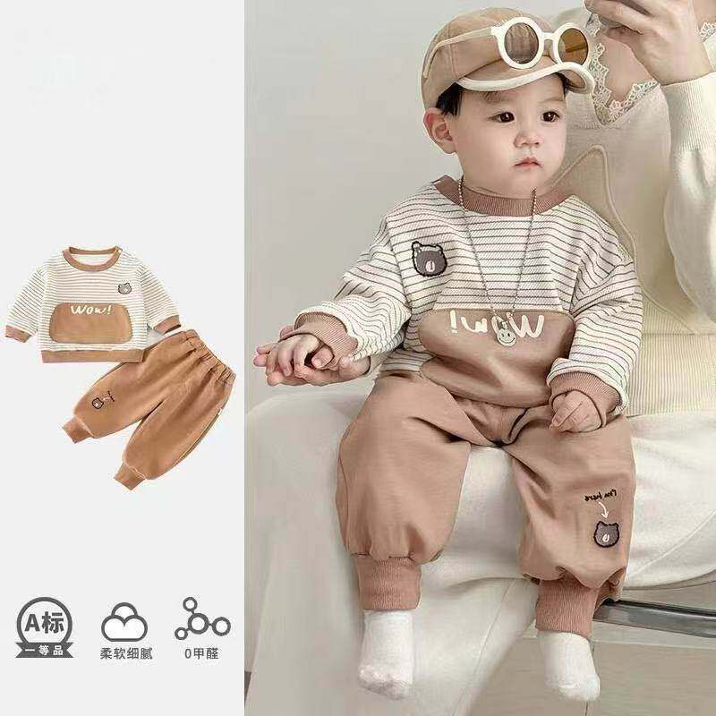 全棉纯棉婴儿春装宝宝卫衣两件套3-6-12个月男童春秋款套装男女童