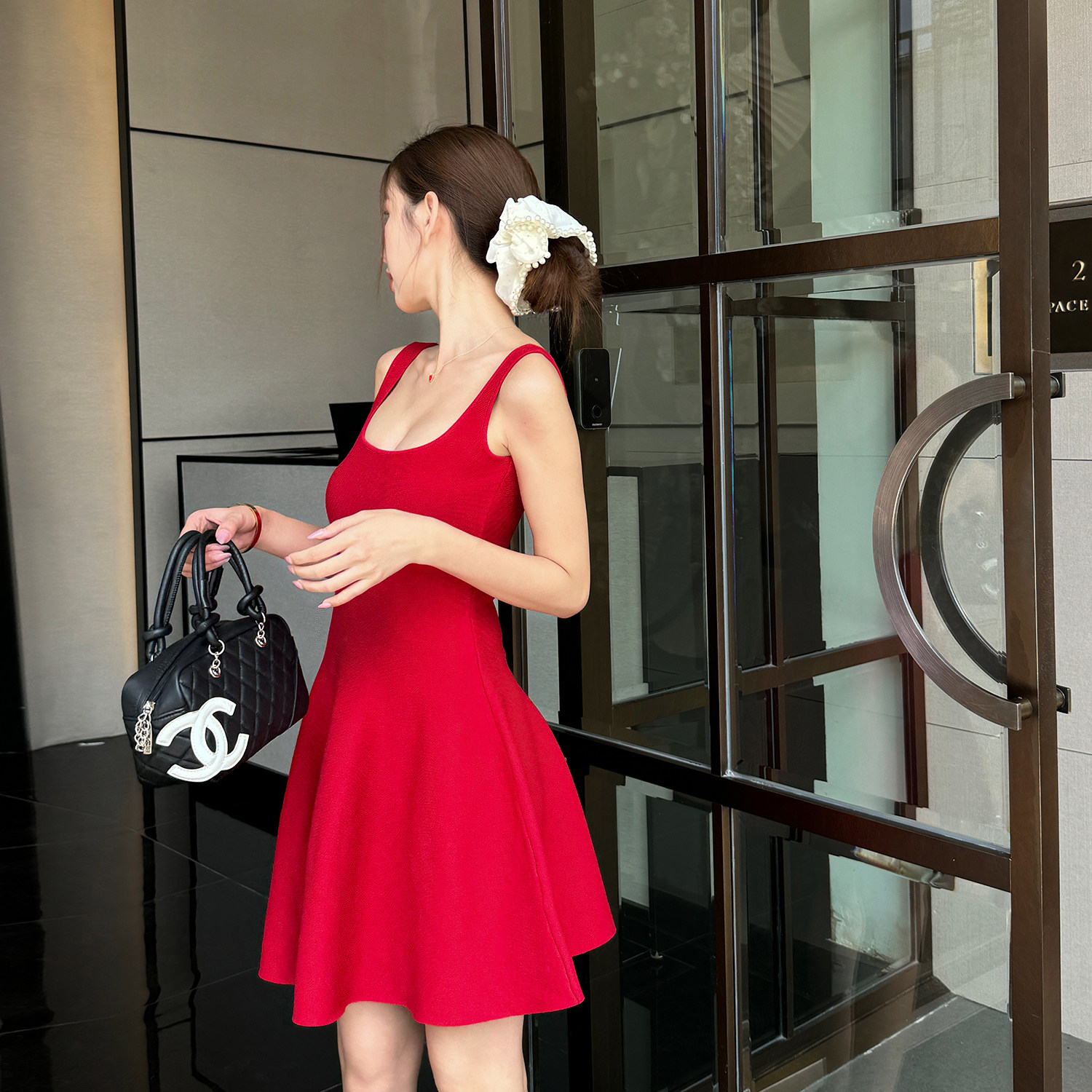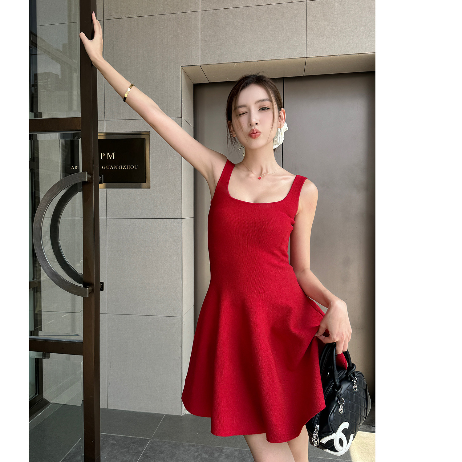 浅布调针织无袖背心裙氛围感红色连衣裙收腰弹力显瘦短款A字短裙