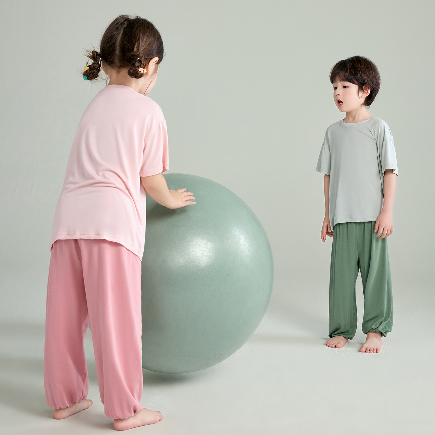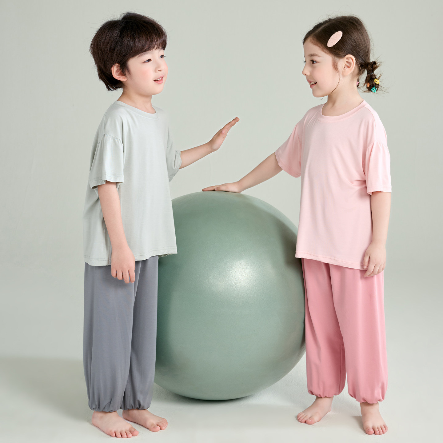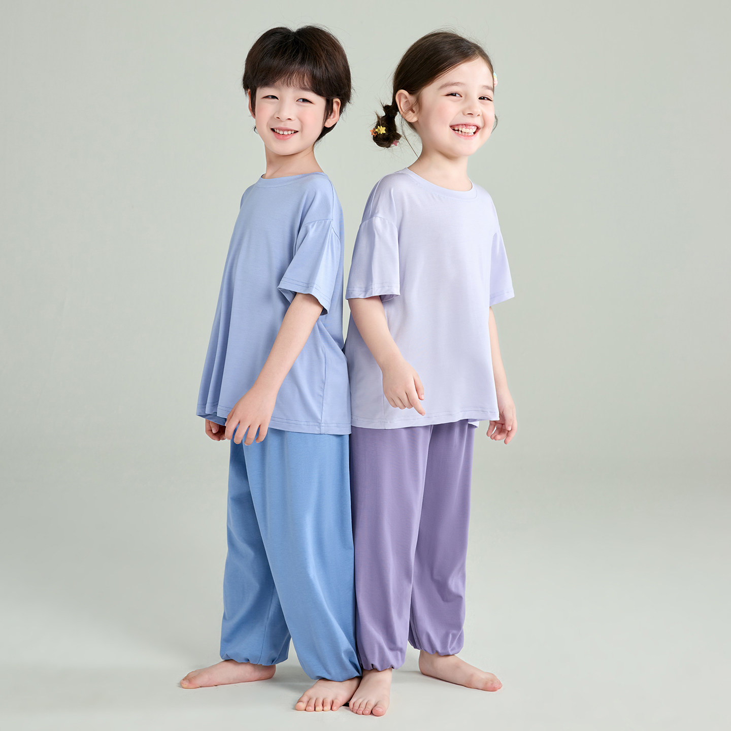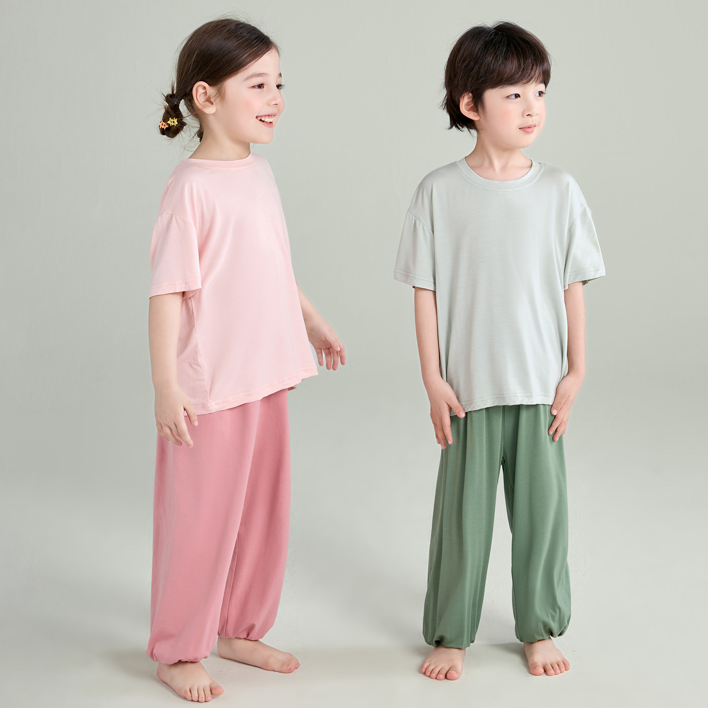 莫代尔棉儿童睡衣男童夏季薄款女孩家居服短袖长裤套装2026新款