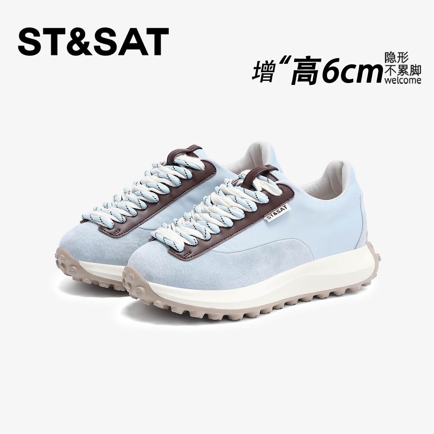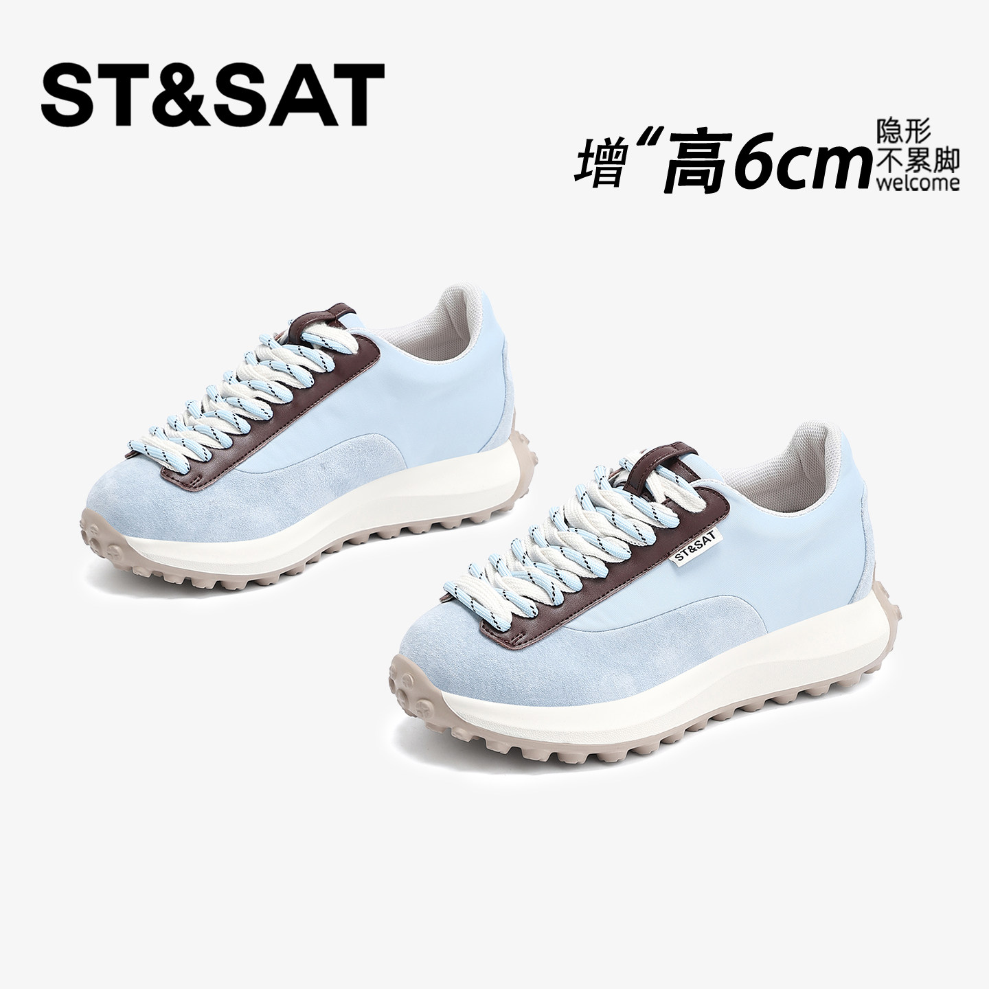 星期六6CM蓝色轻便软底德训鞋女2026新款春季厚底内增高阿甘女鞋