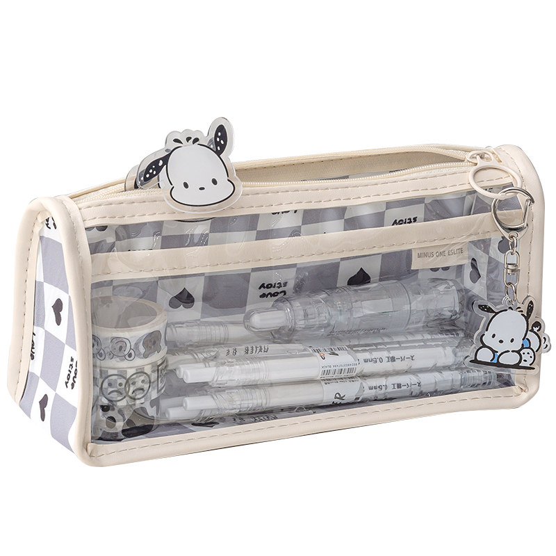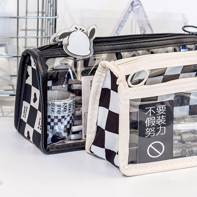 【棋盘格透明笔袋】女生高颜值文具袋 初中学生简约铅笔盒女孩版小学生2022年新款大容量三角黑白格子六年级