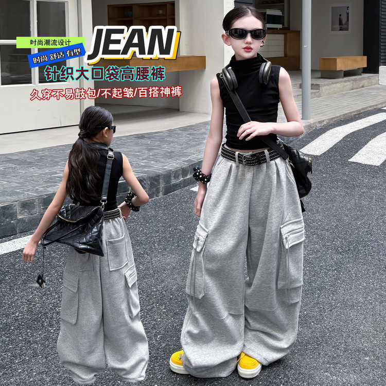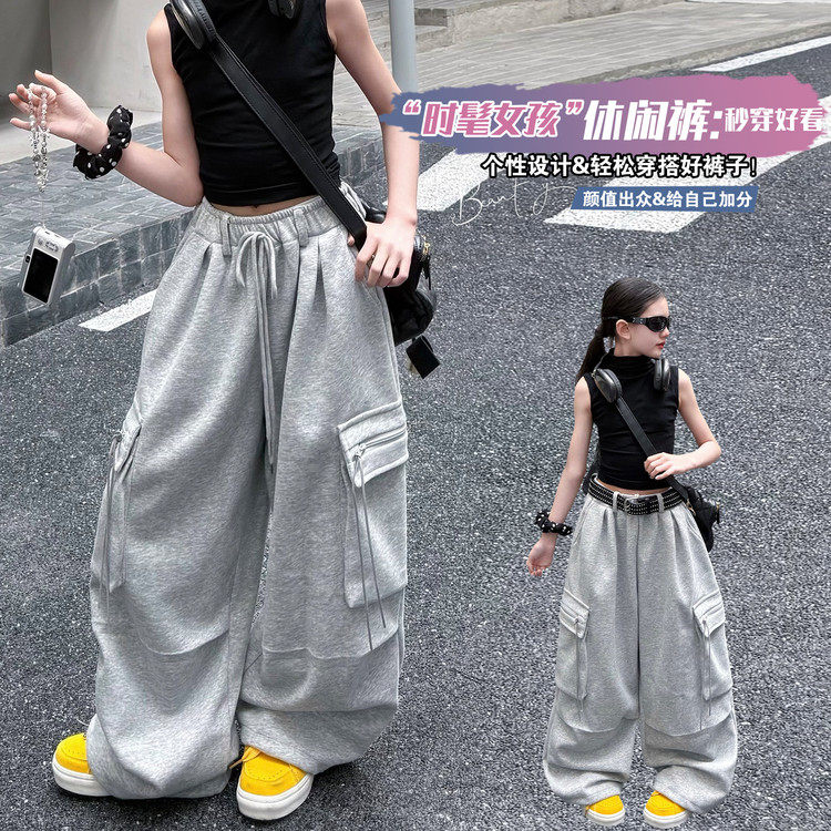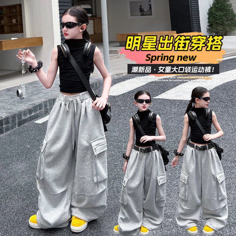 女童工装裤春秋儿童2026新款裤子大童阔腿裤初中生女孩运动裤春款