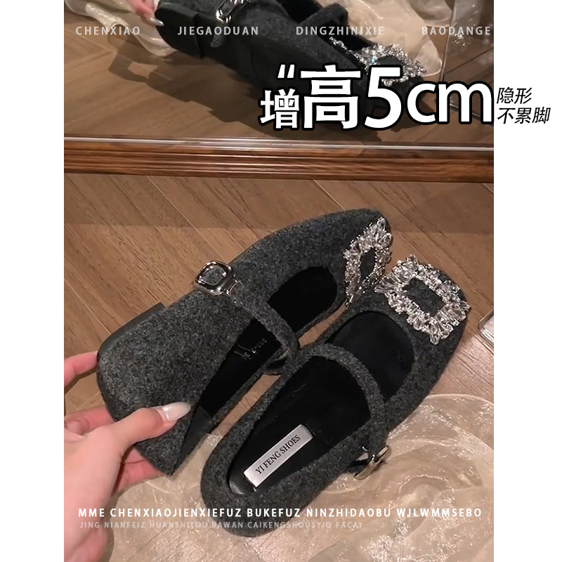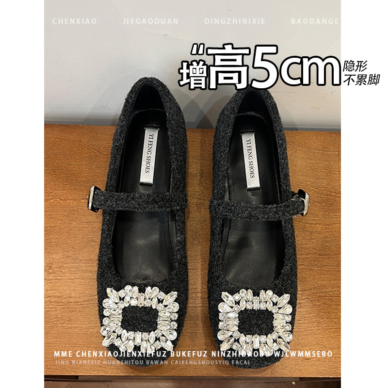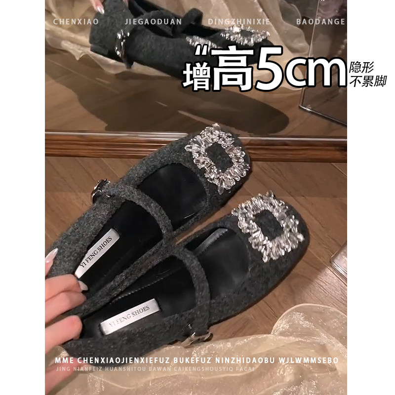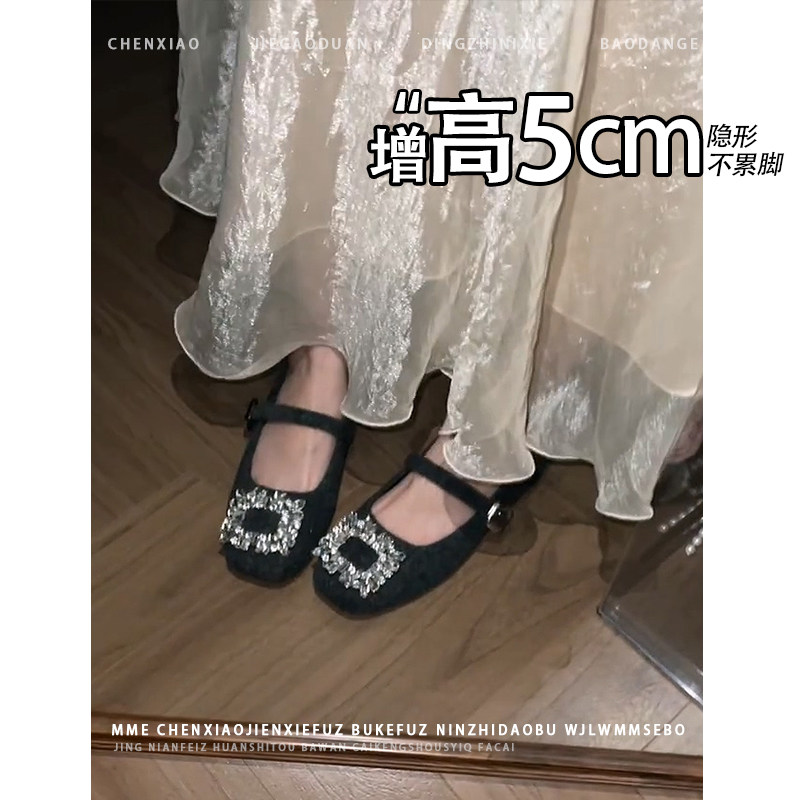 不累脚!小个子内增高5CM玛丽珍鞋2026秋冬新款水钻浅口单鞋女