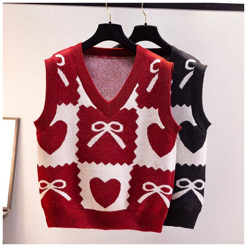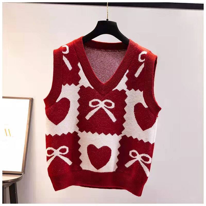 毛衣宝宝马夹中大童潮女童马甲针织背心春秋新款v领无袖套头红色