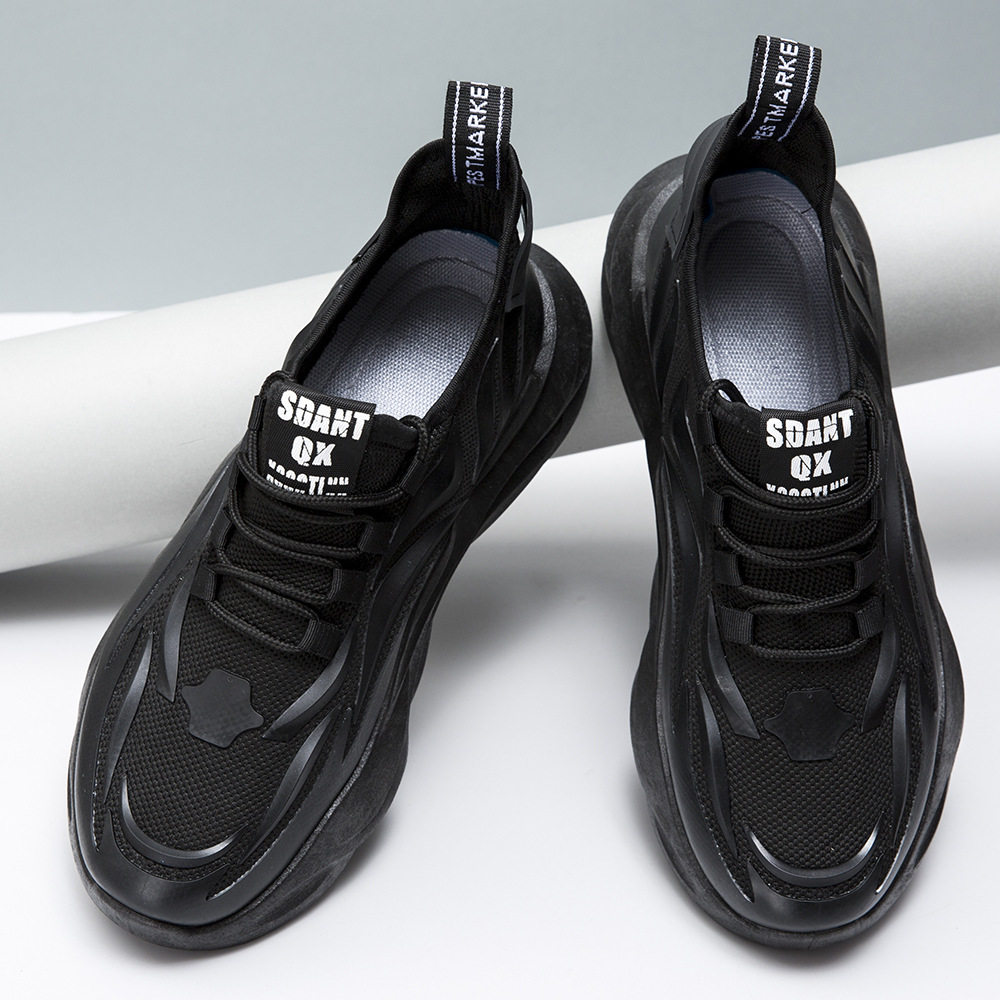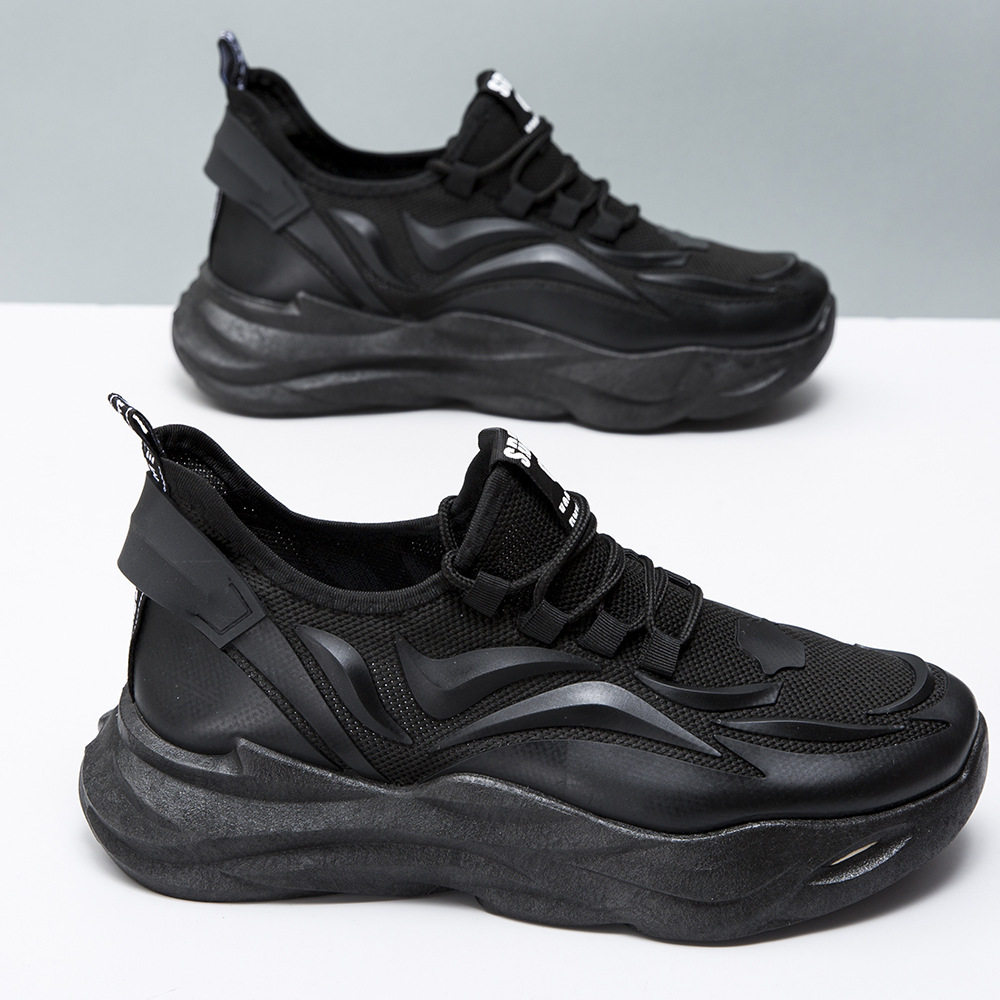 男鞋夏季透气网面男工作劳保鞋厚底老爹鞋男款休闲鞋黑色运动网鞋