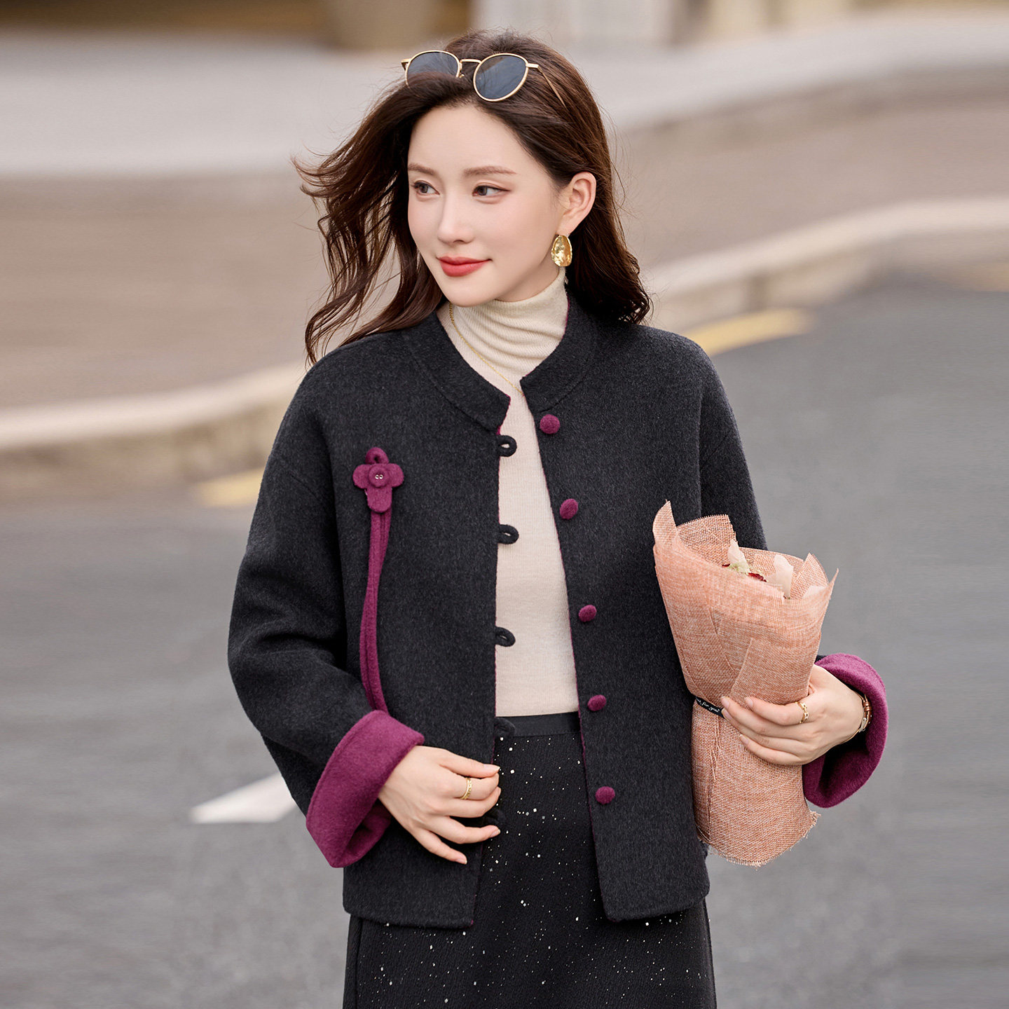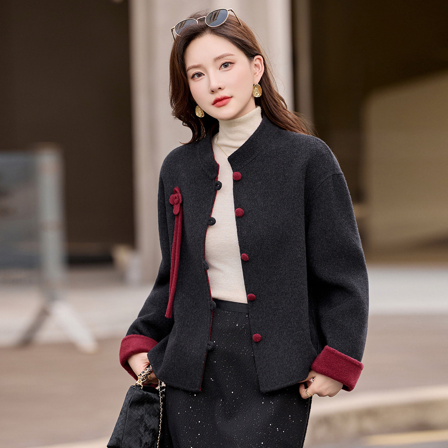 新中式双面羊绒大衣女短款2025秋冬新款宽松高级感减龄羊毛呢外套