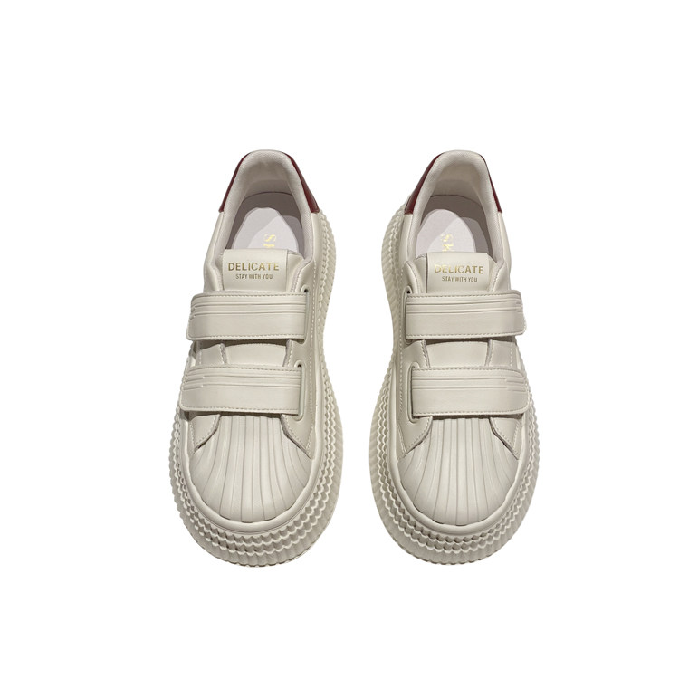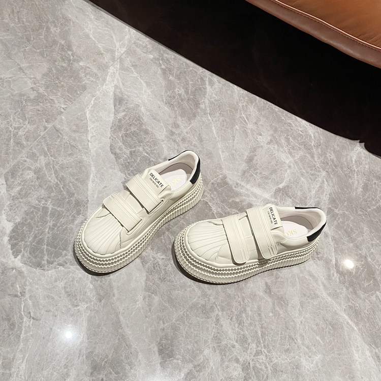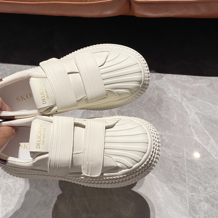 巨轻~魔术贴贝壳头厚底真皮小白鞋女2026春新款休闲板鞋学生女鞋