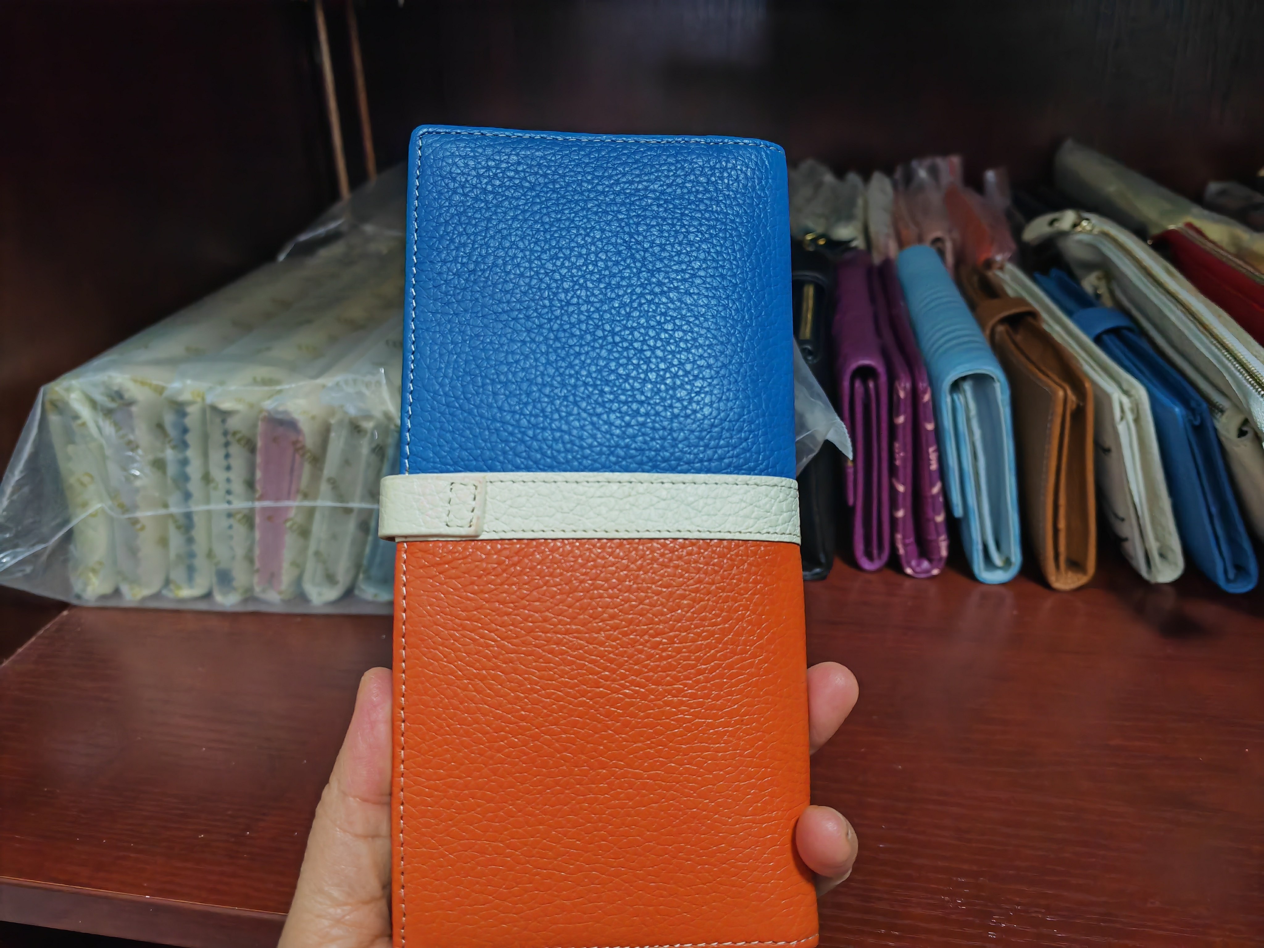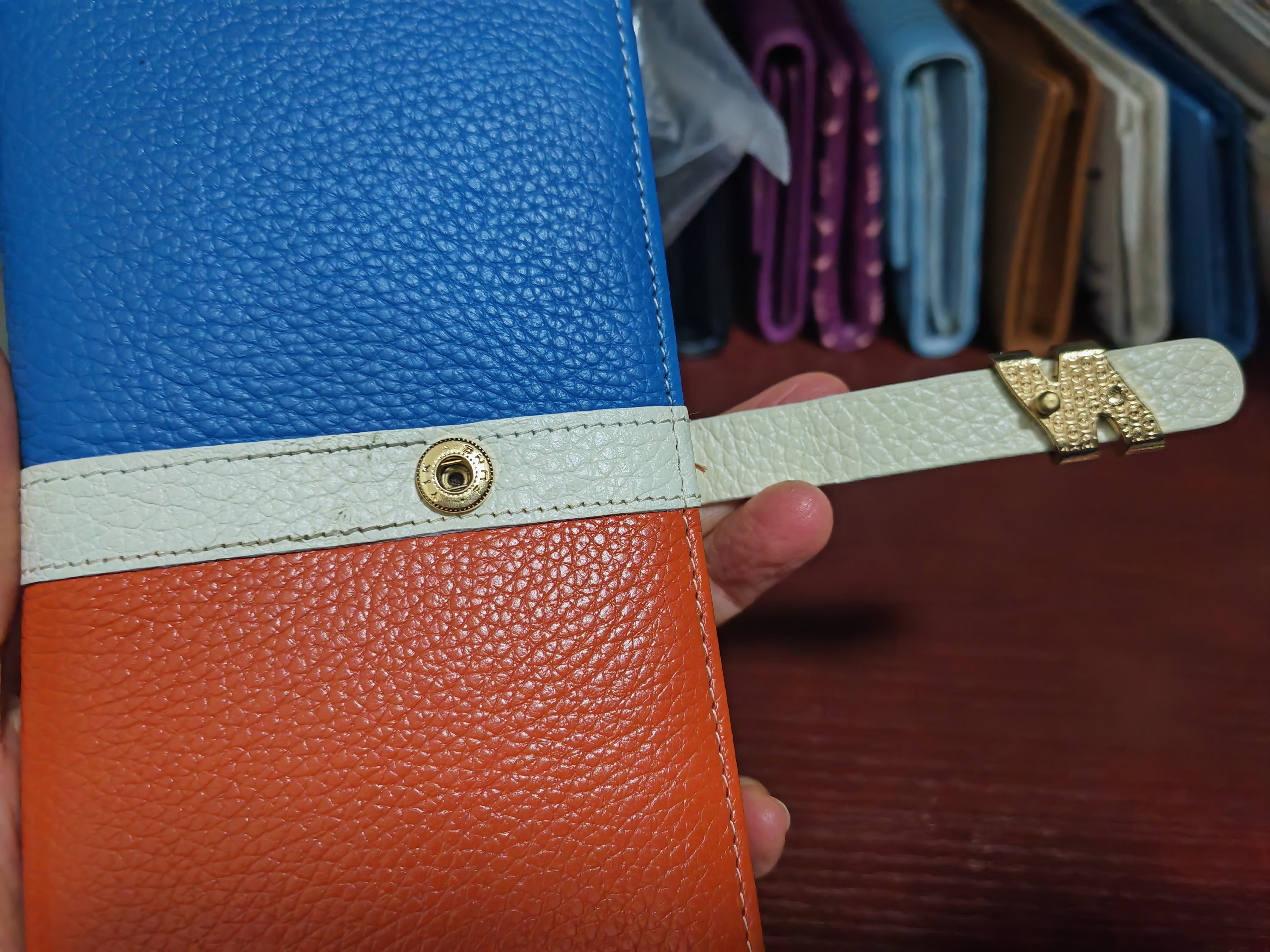 女士真皮钱包长款搭扣钱夹撞色韩版潮时尚新款头层牛皮皮夹