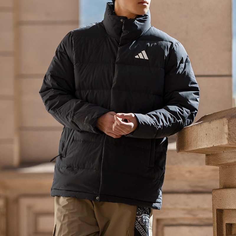 Adidas阿迪达斯排骨羽绒服男款25春季新款黑色防寒立领羽绒外套