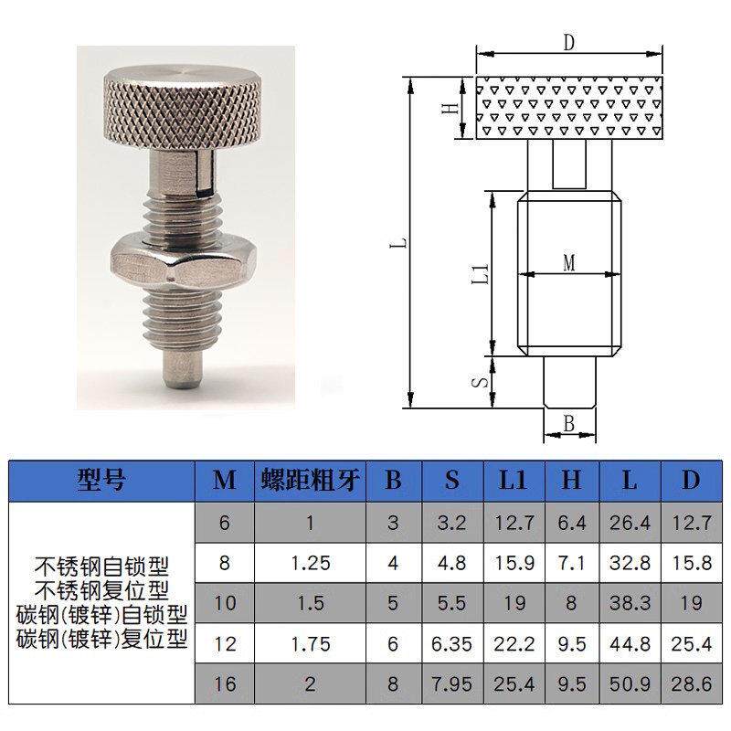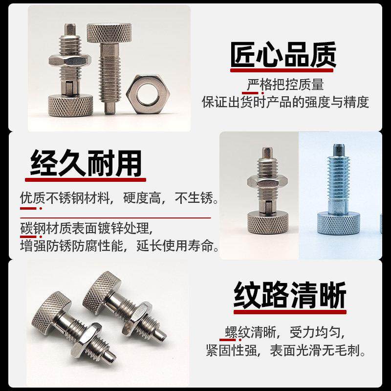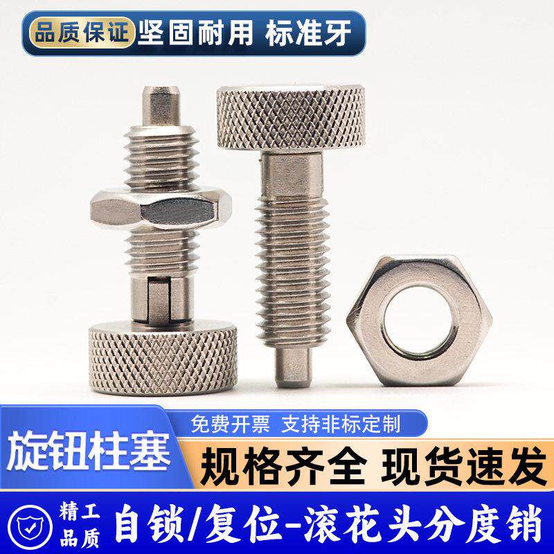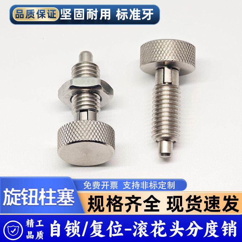 滚花头分度销旋钮柱塞不锈钢自锁弹簧定位销插销止动定位柱伸缩型