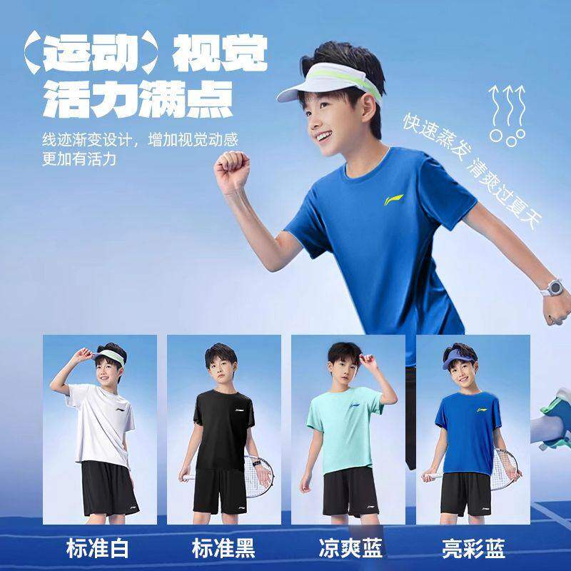 李宁童装速干套装男童夏季T恤冰丝短裤短袖运动套装官方旗舰正品