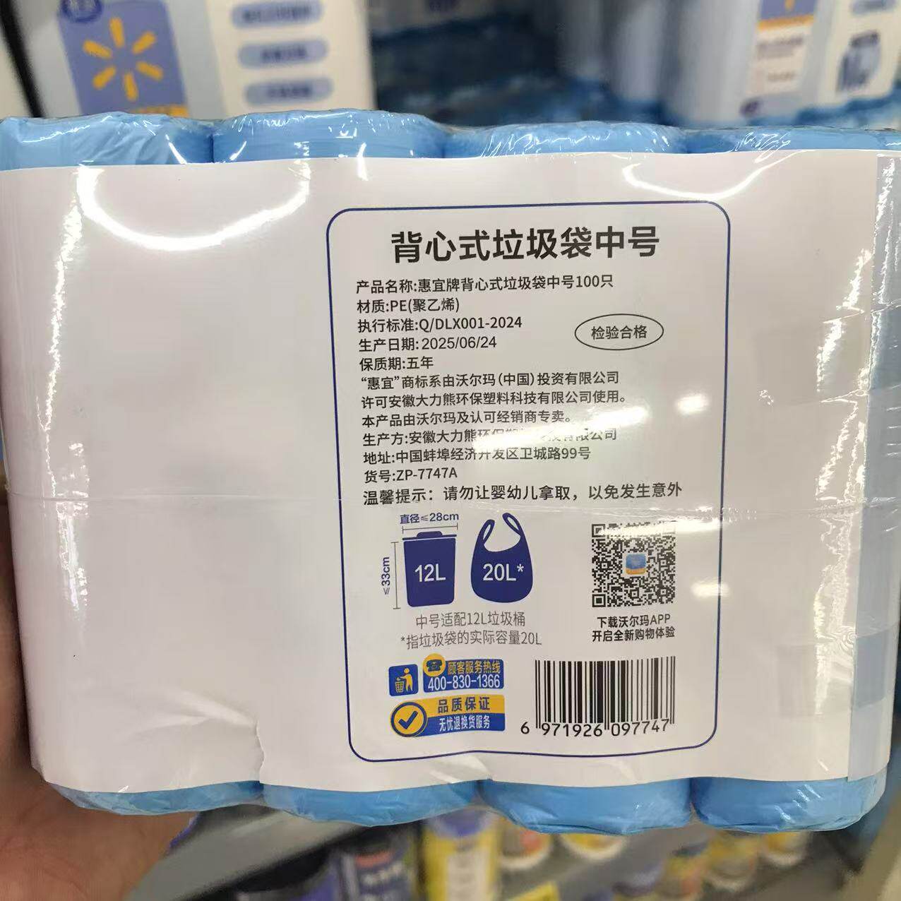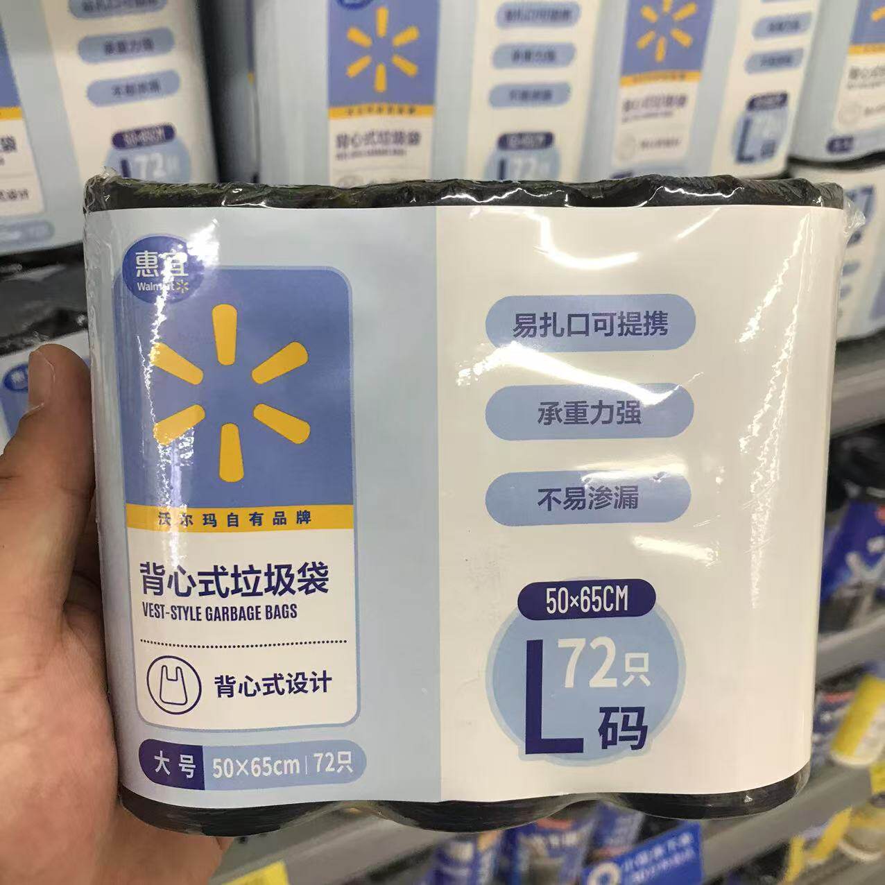 沃尔玛惠宜背心垃圾袋家用加厚手提式厨房用垃圾袋大中号清洁袋子