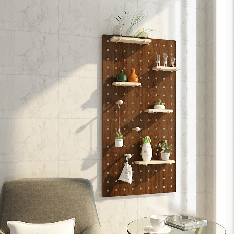 实木洞洞板定制木质免打孔墙上置物架厨房玄关墙面收纳装饰背景墙