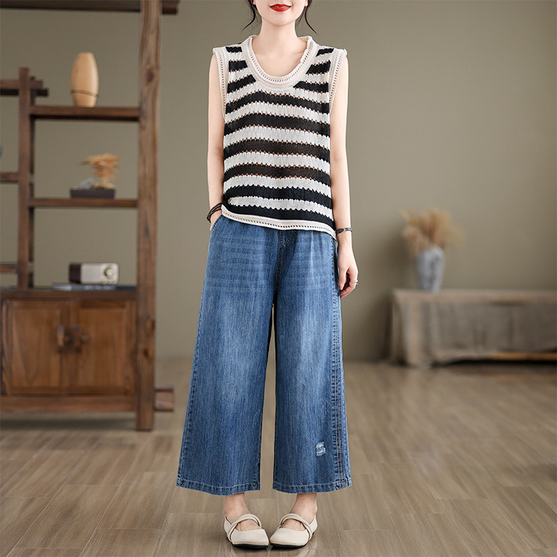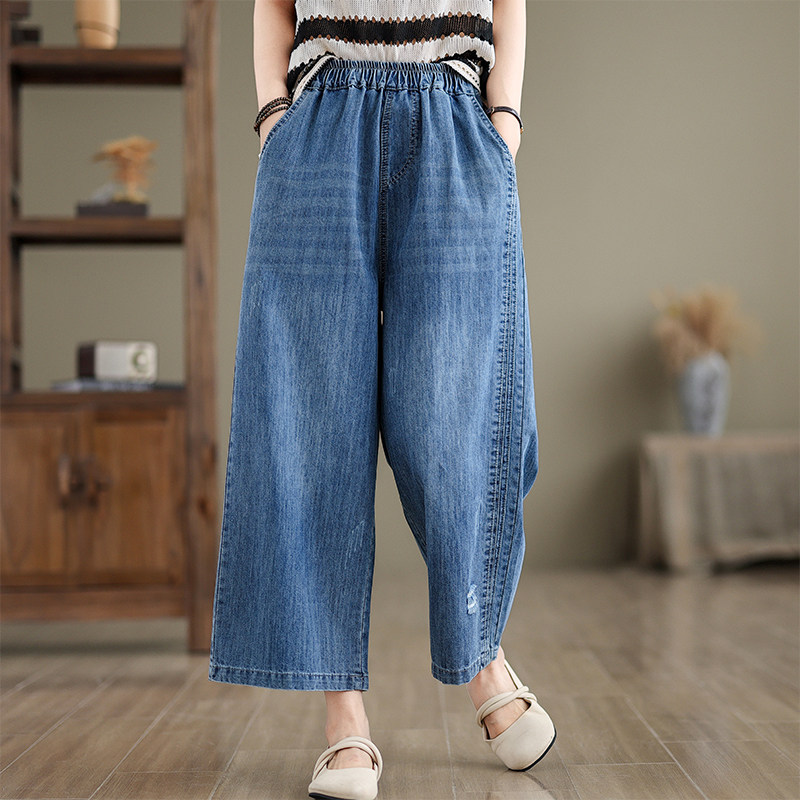 2026夏季新款大码磨白破洞直筒牛仔裤显瘦百搭小个子九分阔腿裤女