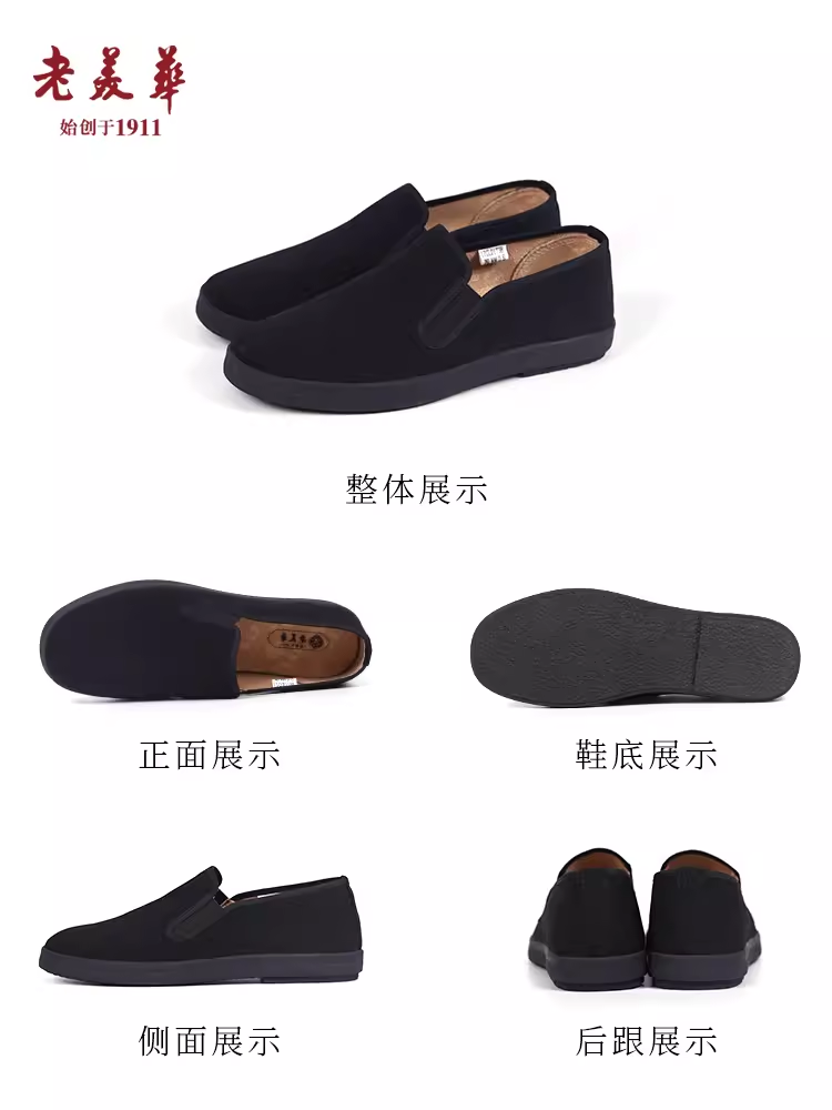 老美华正品老北京布鞋一脚蹬网眼透气休闲软底简约男鞋