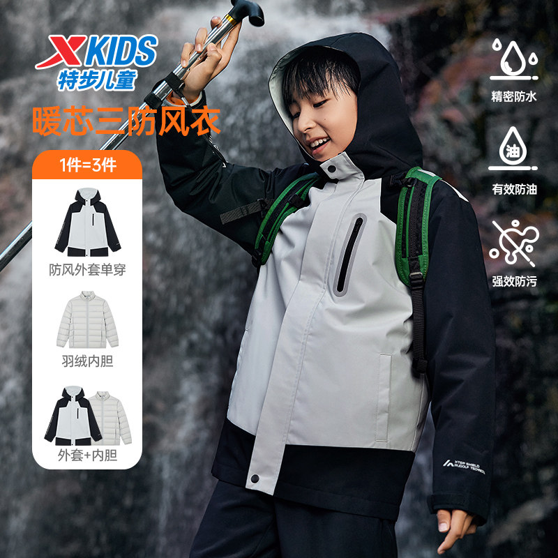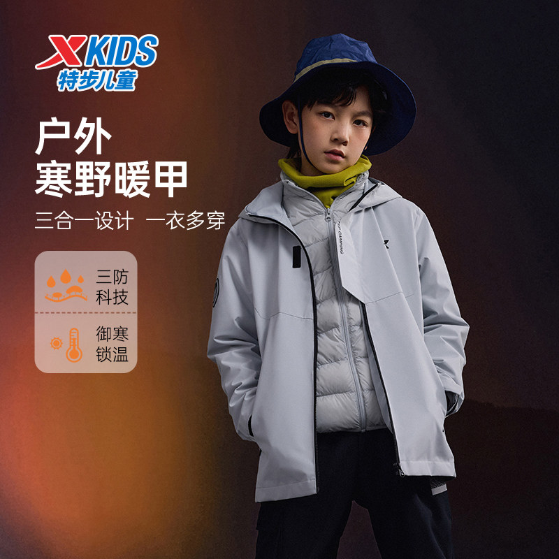 【小暖壳】特步童装儿童外套三合一两件套冬季羽绒服三防上衣男童