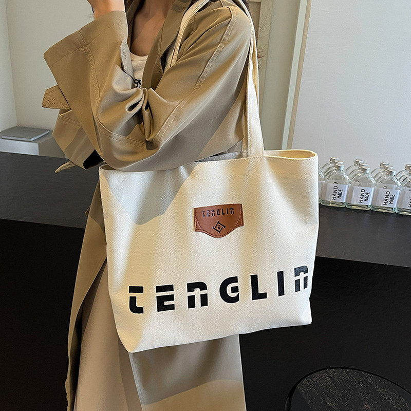 日系帆布包大容量包包女2025新款潮手提袋休闲简约单肩通勤托特包