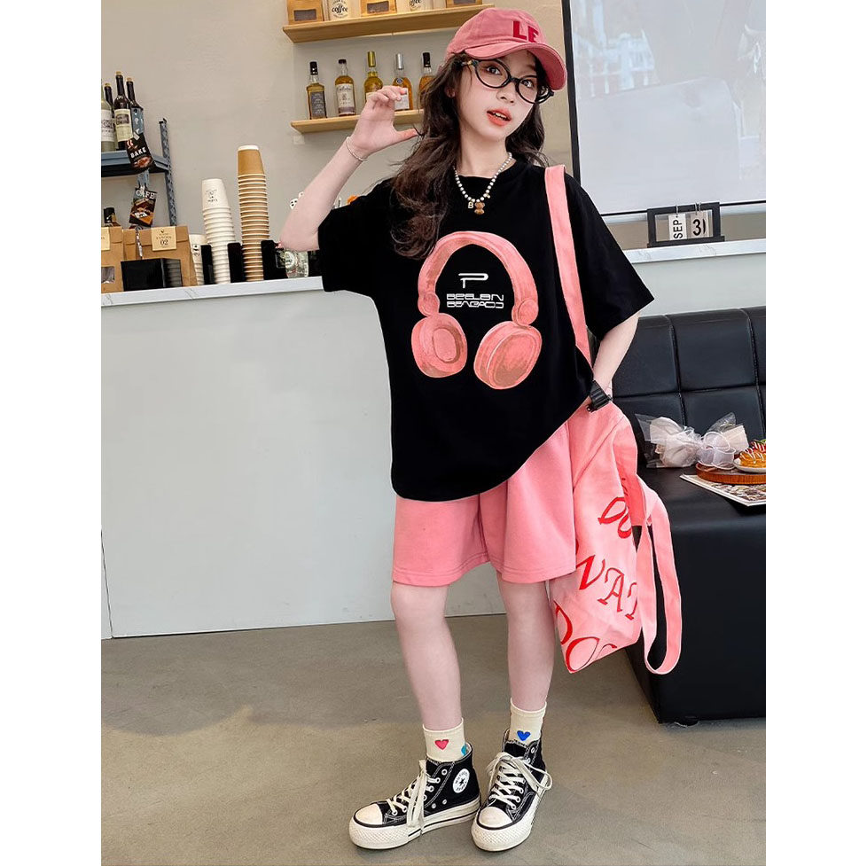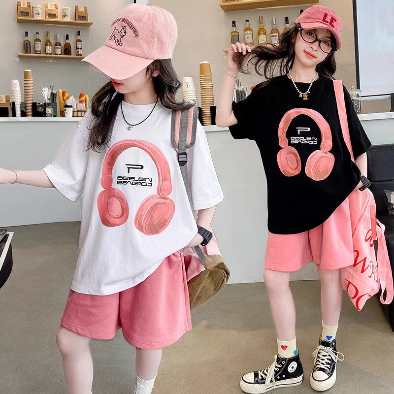 女童夏装短袖t恤上衣休闲短裤两件套2025新款中大童女孩套装衣服