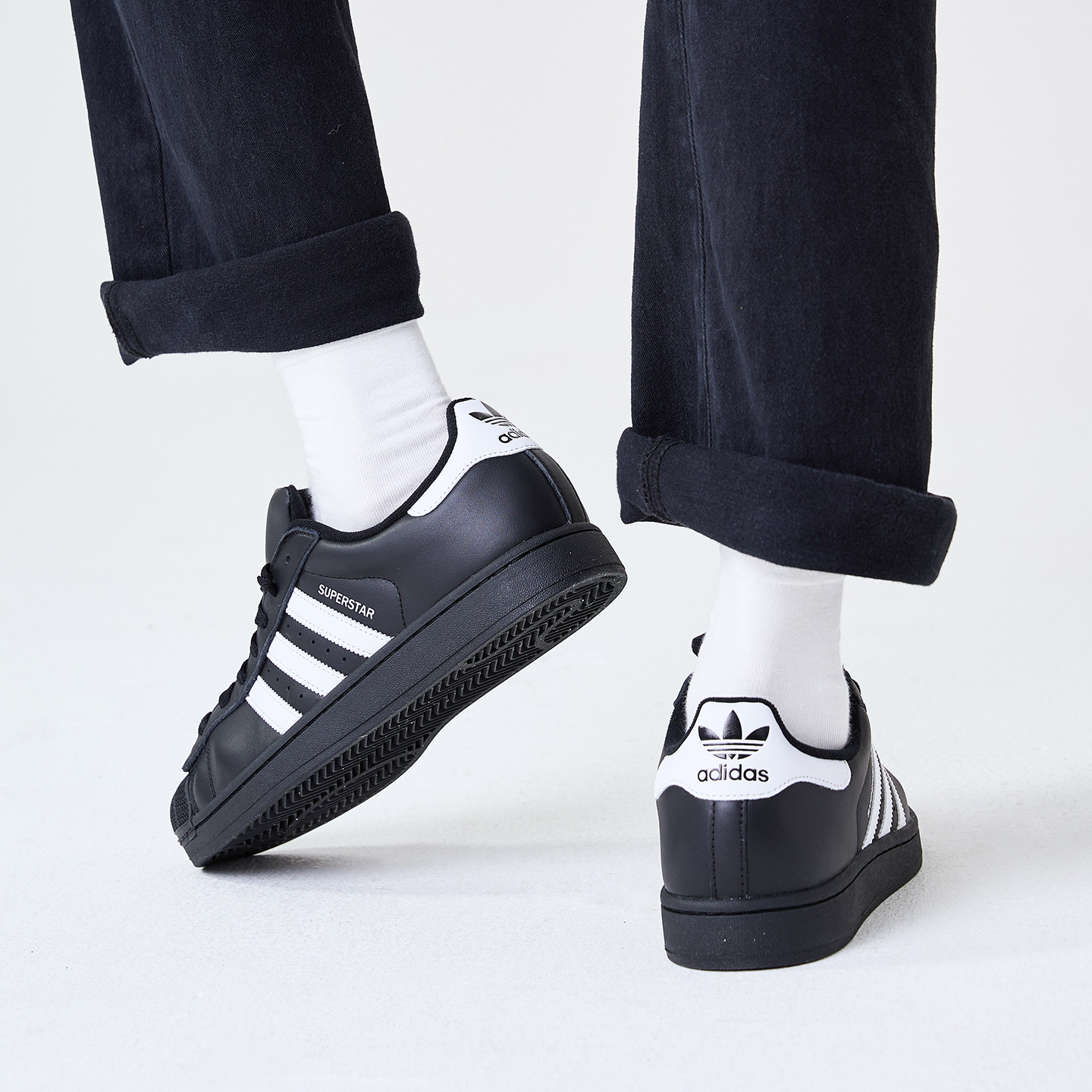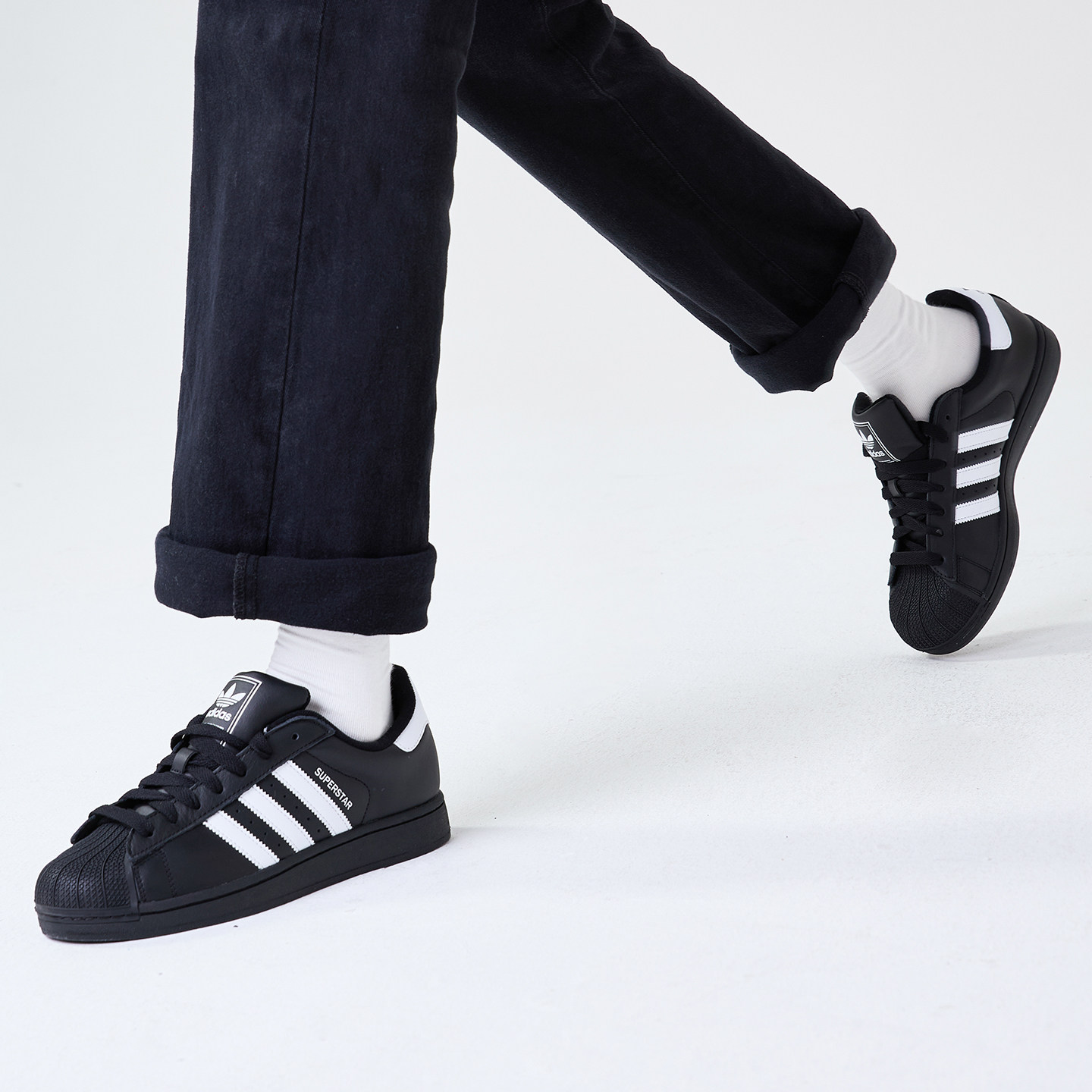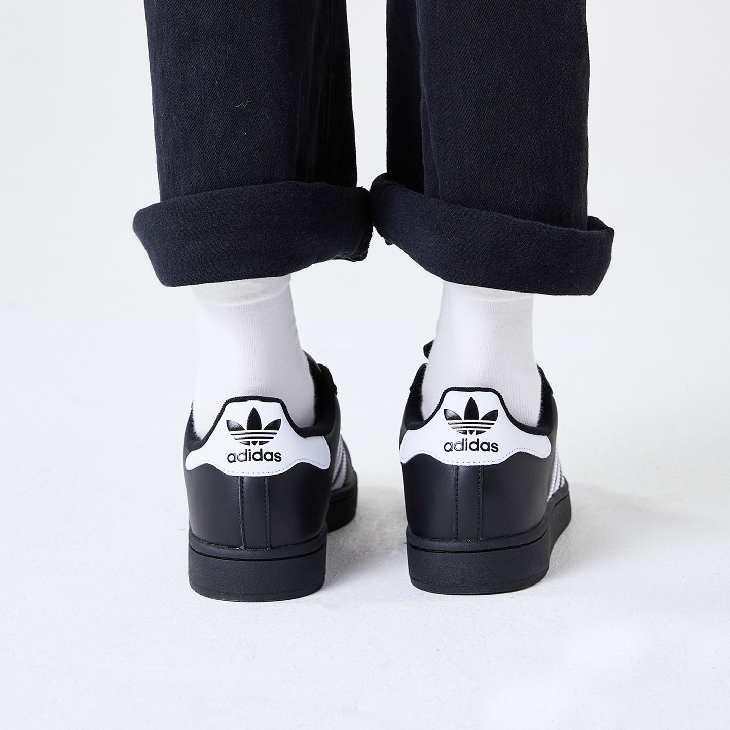 阿迪达斯鞋男鞋女新款正品三叶草黑色金标贝壳头休闲鞋低帮板鞋男