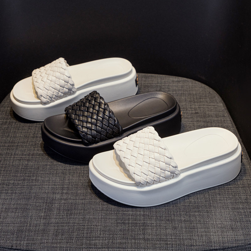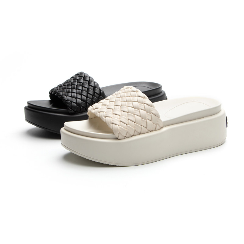 厚底编织拖鞋女款2025年新款时尚外穿绝美夏天高级感凉拖鞋女米色