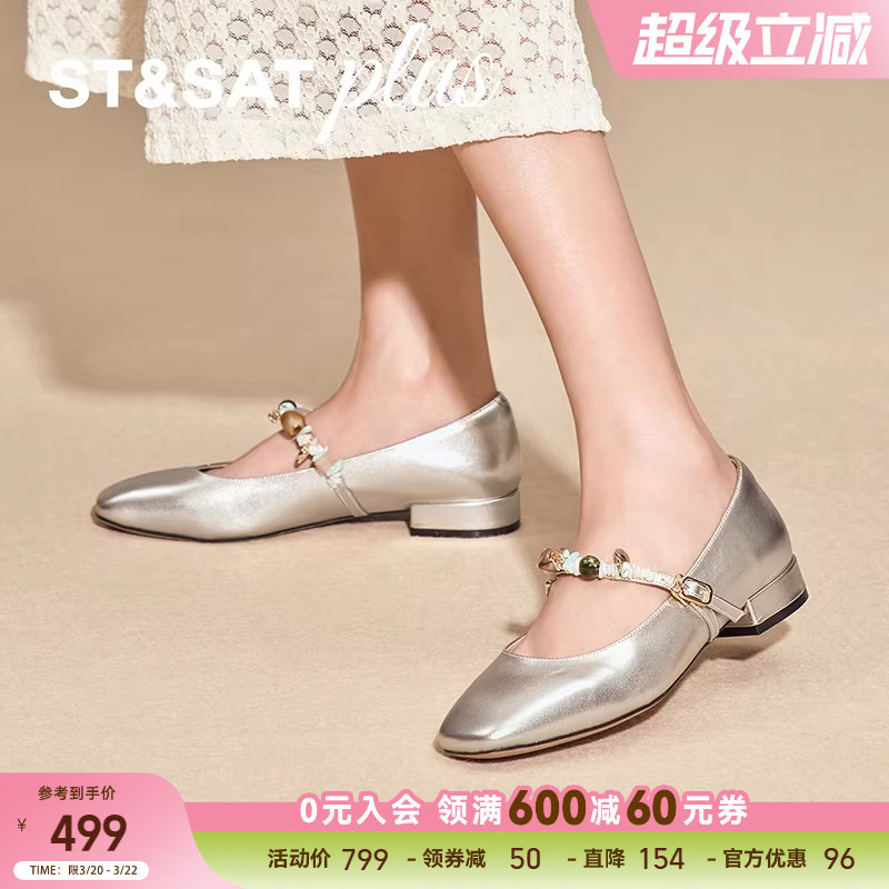 星期六女鞋2026春款玛丽珍鞋法式粗跟一字扣带浅口单鞋SSE1111057