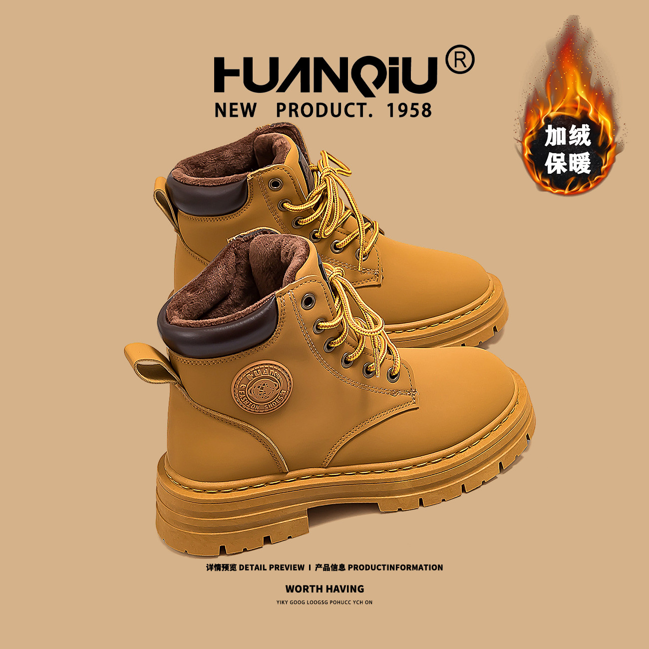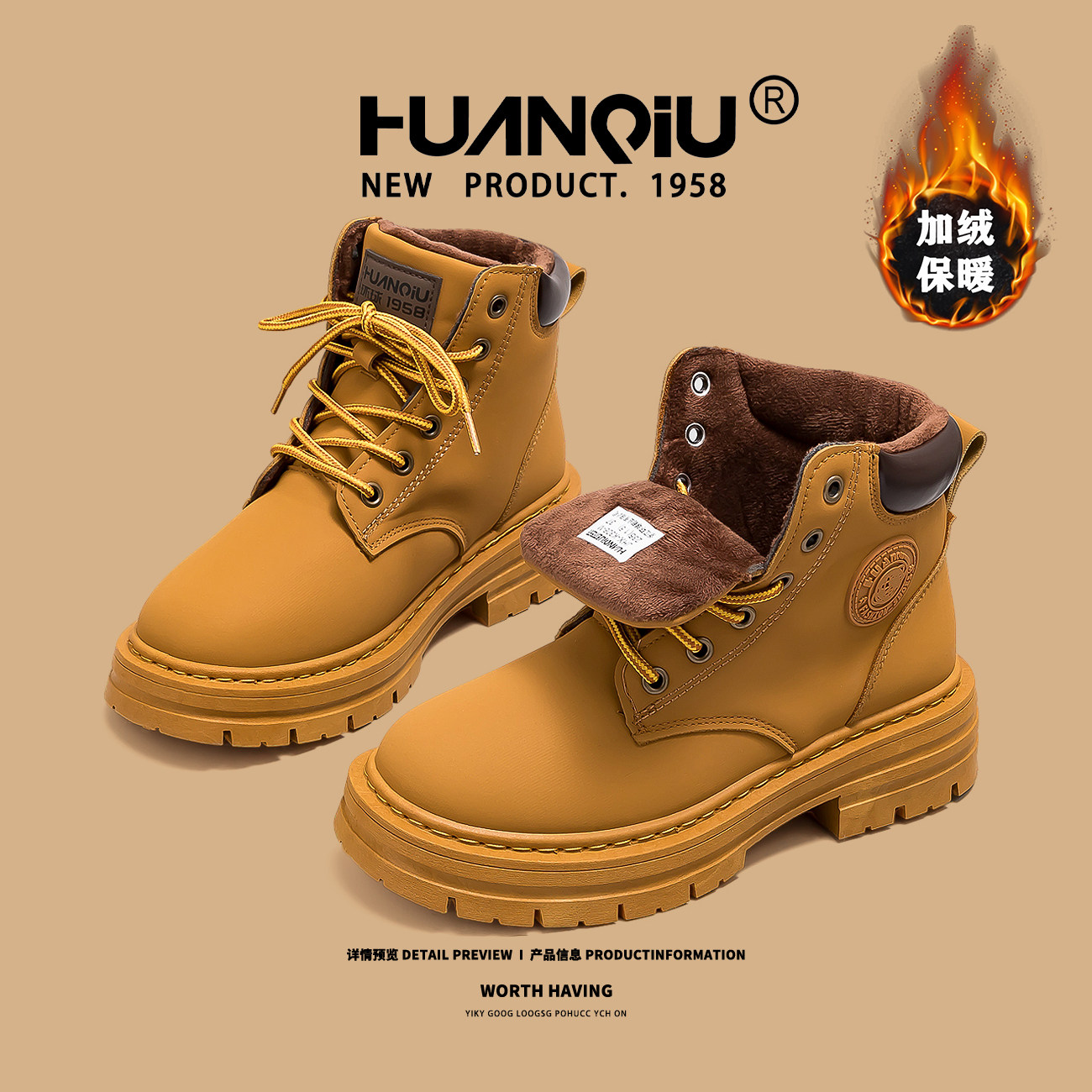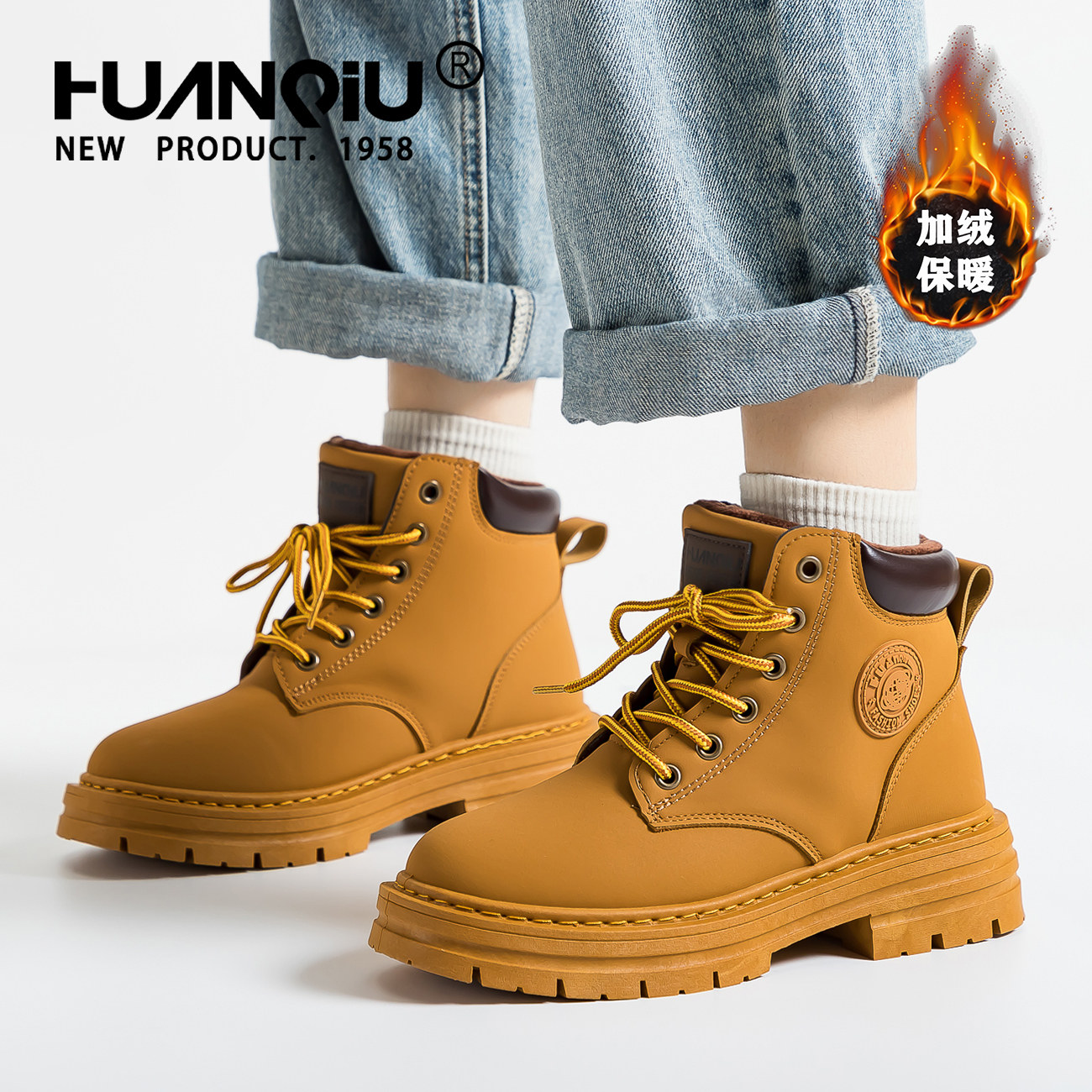 环球加绒厚底马丁靴女款2026冬季新款加厚保暖短靴复古休闲二棉鞋