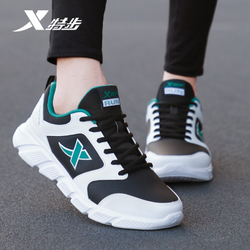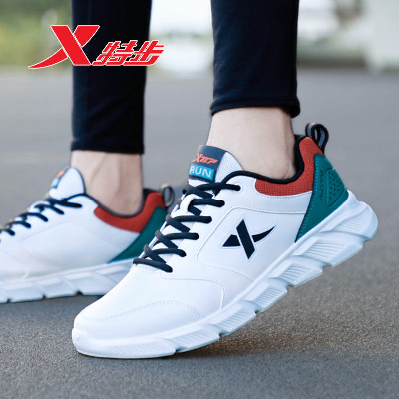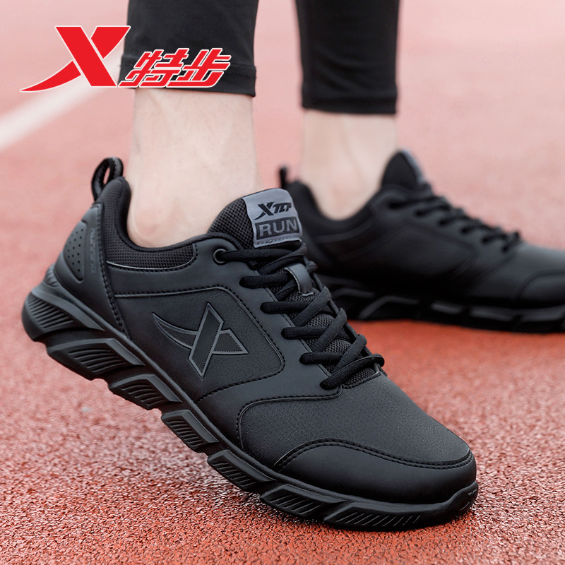 特步男鞋皮面防水跑步鞋春季官方正品男士休闲鞋子爸爸鞋运动鞋男