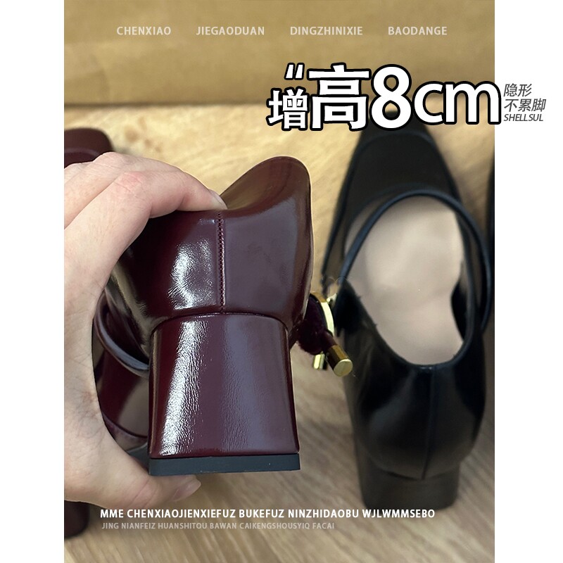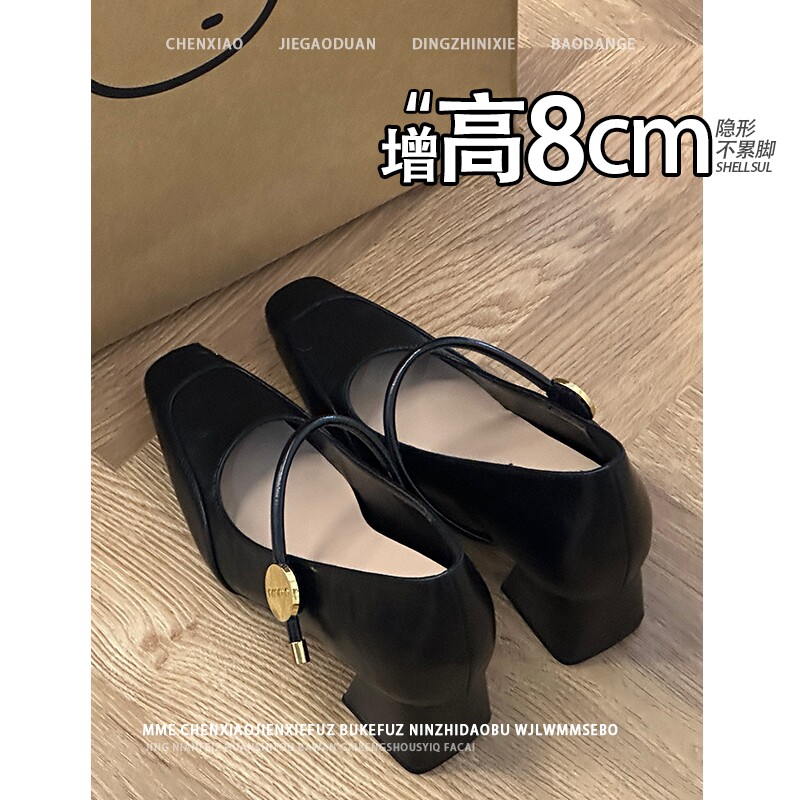 不累脚!隐形内增高8CM2026春夏高跟鞋新款方头粗跟玛丽珍单鞋女