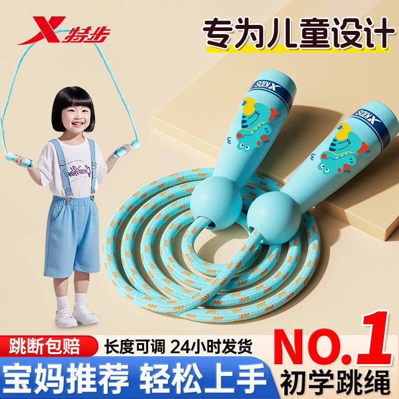 特步跳绳儿童幼儿园初学小学生小学专用竞速不打结大班3岁5岁绳子