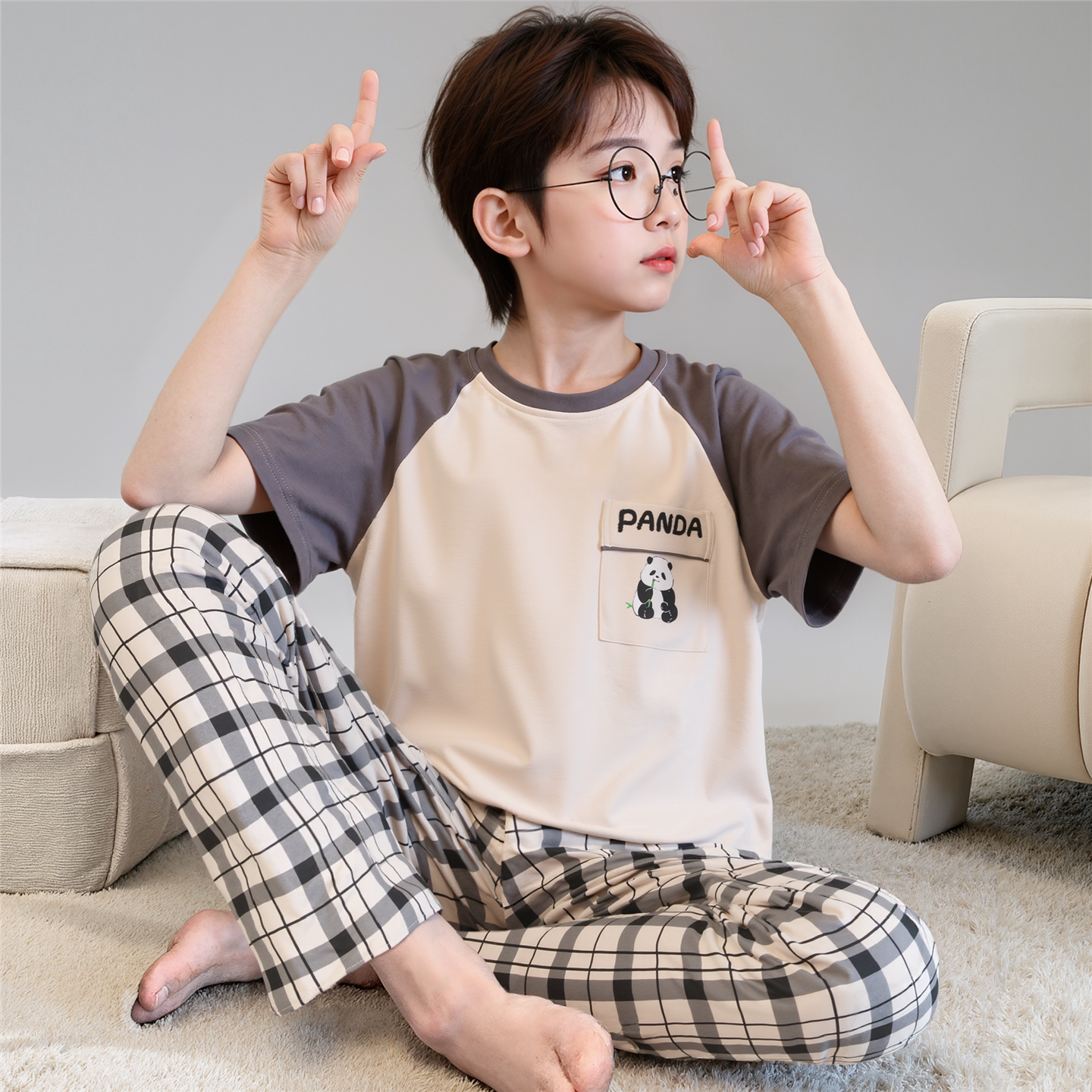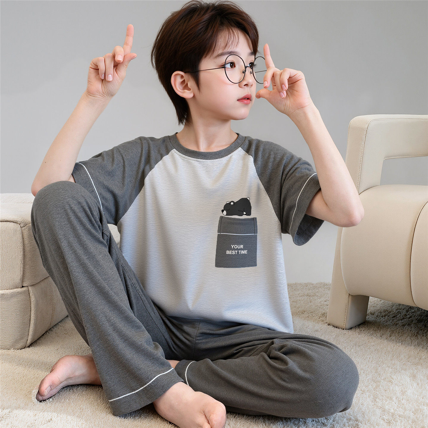 儿童睡衣男童夏季纯棉短袖长裤大童男孩青少年初中学生家居服套装