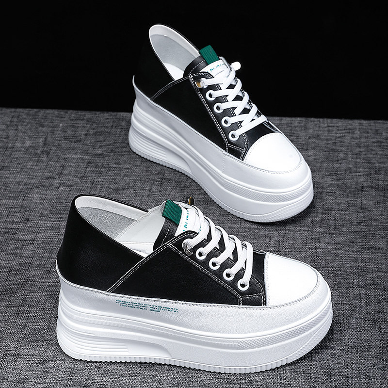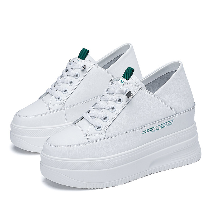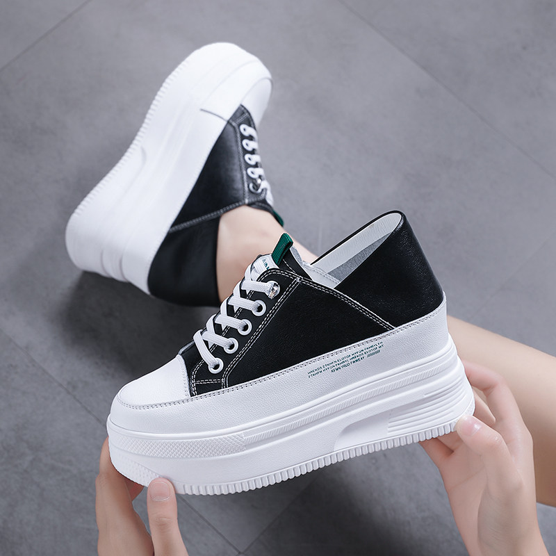 8CM内增高女鞋真皮爆款百搭小白鞋33码小个子两穿厚底轻便松糕鞋