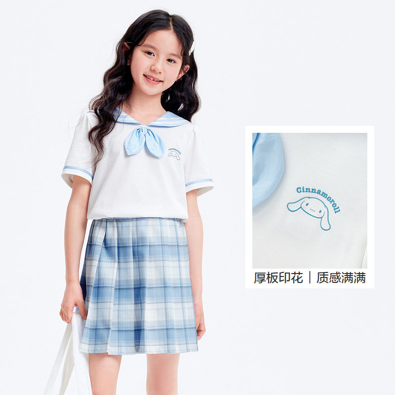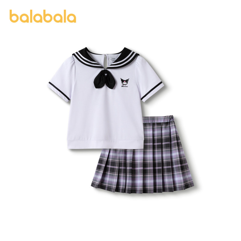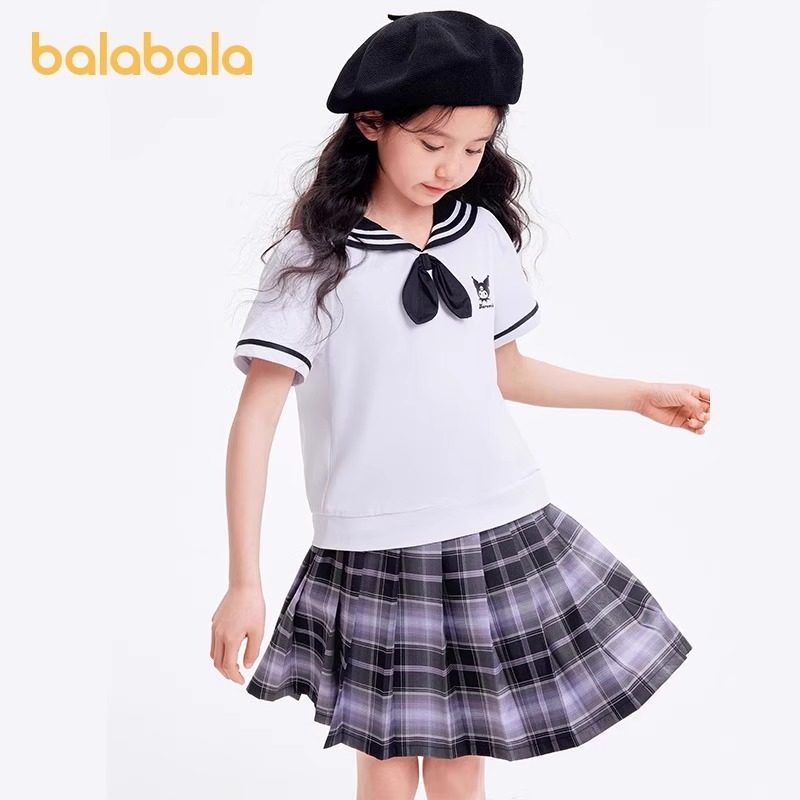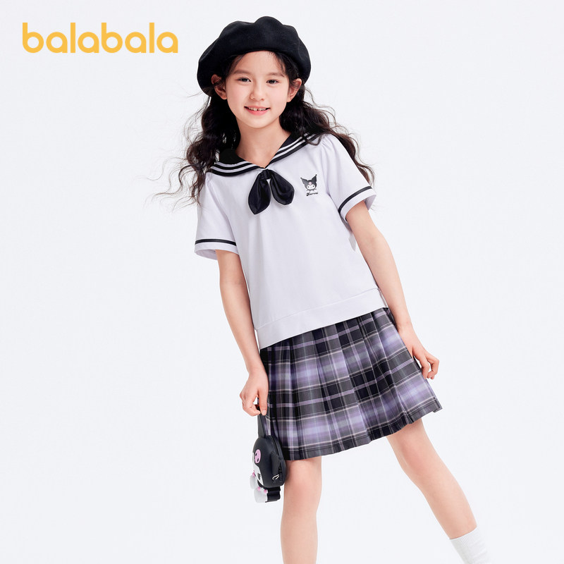 库洛米商场同款巴拉巴拉女童夏装JK套装百褶裙新款大童速干两件套