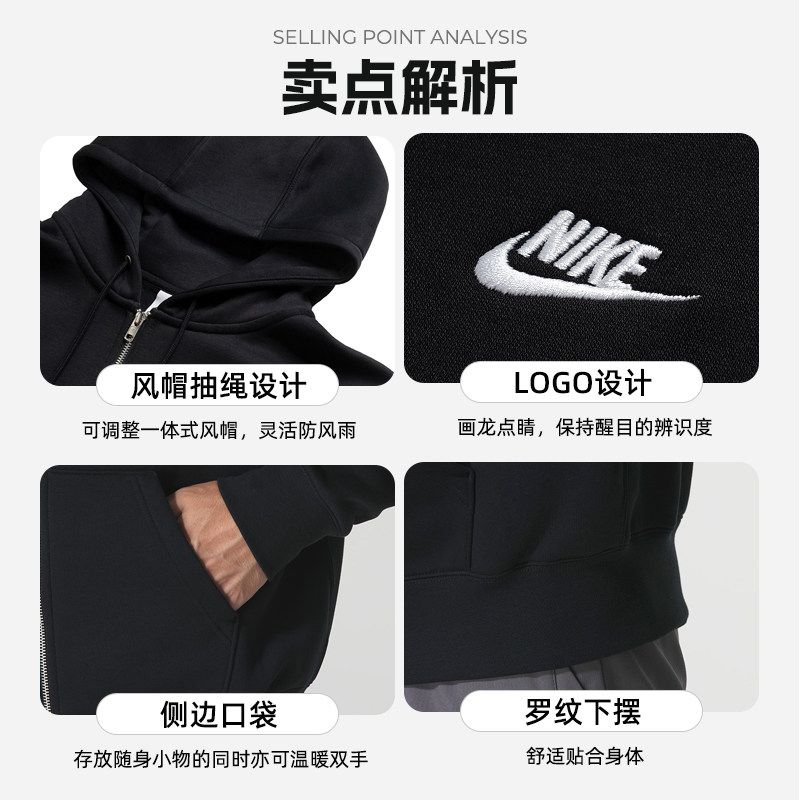 NIKE耐克男款外套2026春季新款加绒保暖连帽运动服休闲夹克FN3862