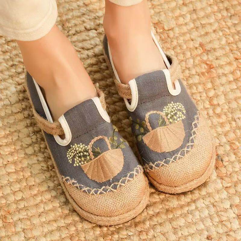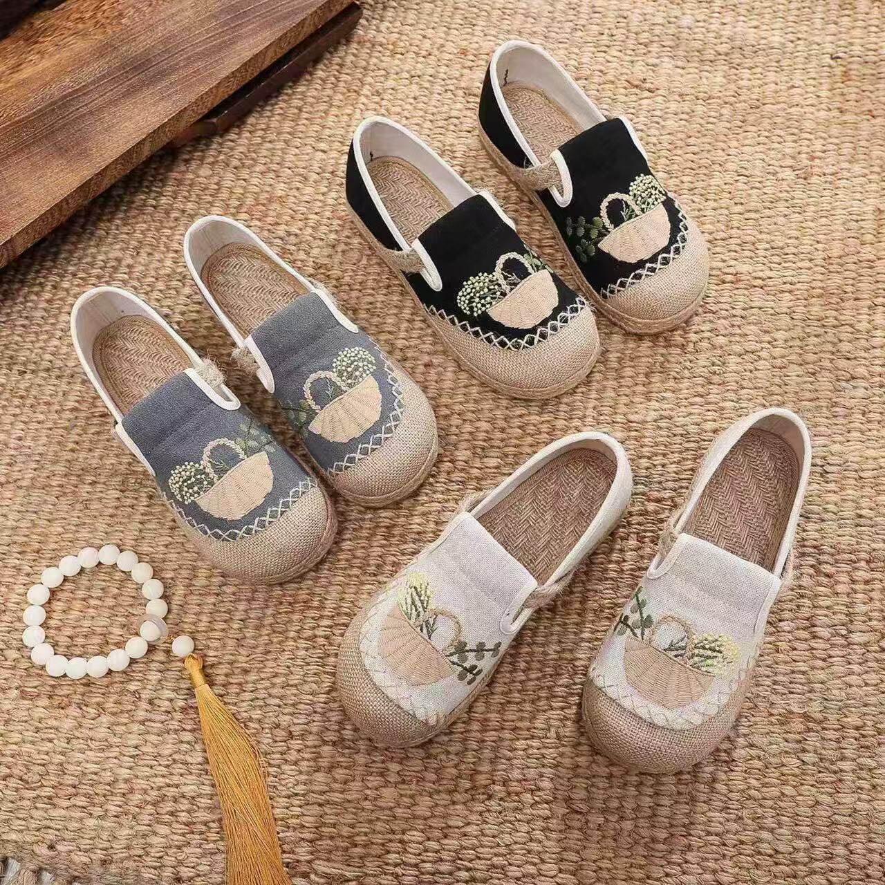 春夏新款老北京布鞋低帮绣花鞋女鞋亚麻舒适简约一脚蹬透气渔夫鞋