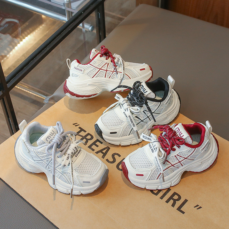 儿童运动鞋网面透气女童鞋子系鞋带宝宝老爹鞋春秋款跑步鞋男童鞋