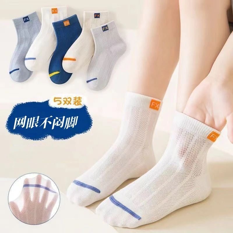 儿童袜子男女童中筒袜秋季薄款学生运动潮袜小孩吸汗网眼HH