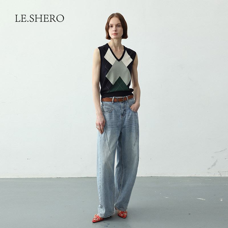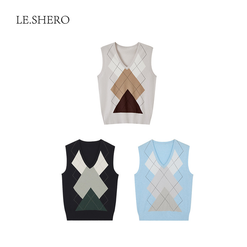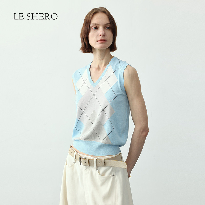 LE.SHERO原创百搭叠穿几何图案薄款针织衫女夏季2025新款毛衣马甲