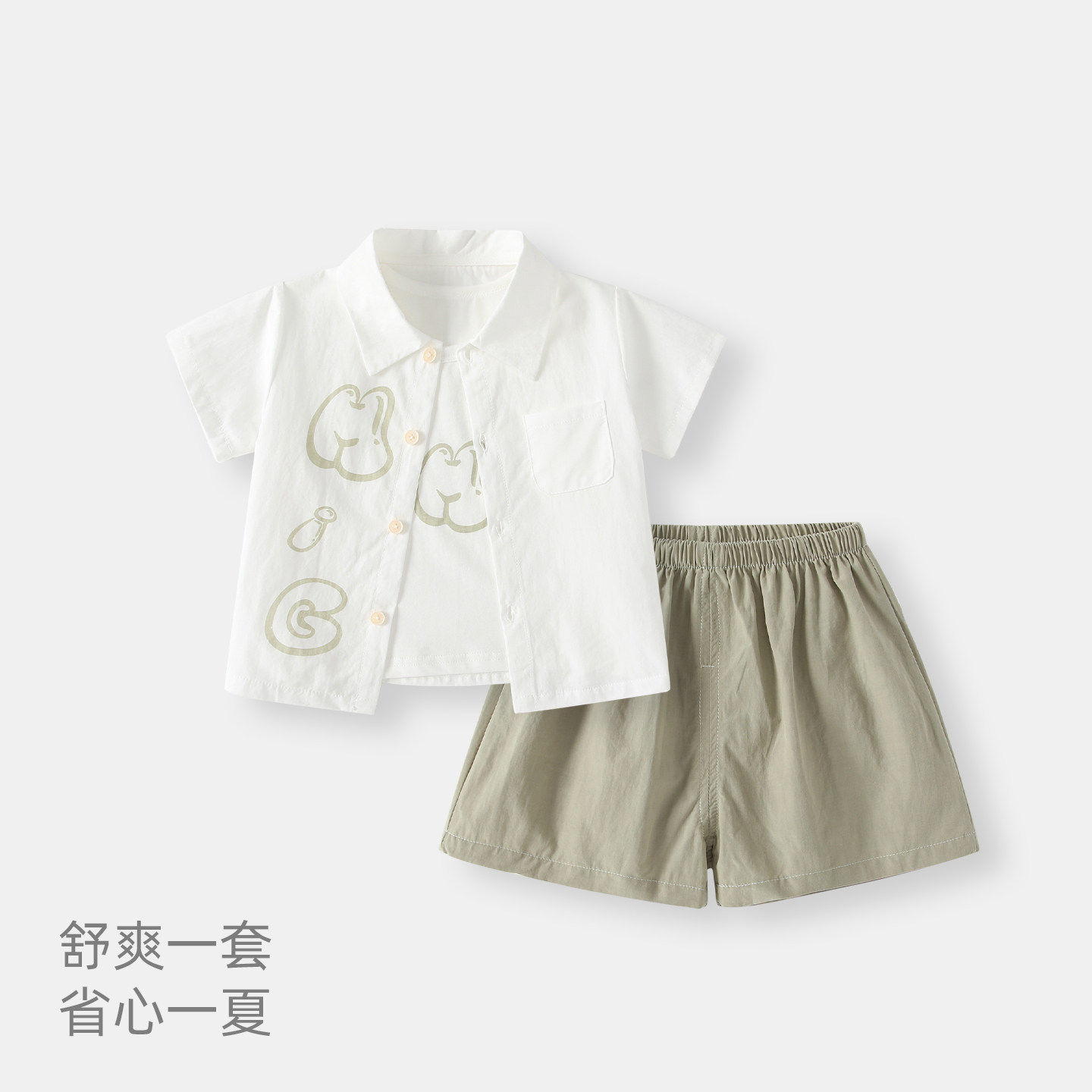 男童套装2026新款宝宝夏装薄款短袖衬衫三件套男童休闲装洋气衣服