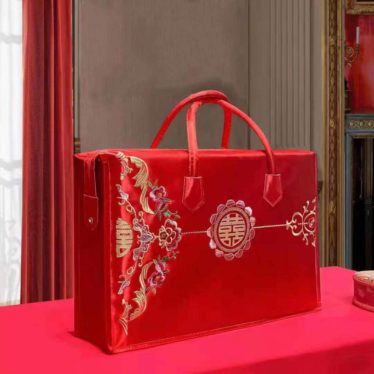 结婚四件套包装袋红色装被子手提袋陪嫁婚庆喜被收纳袋礼品整理袋