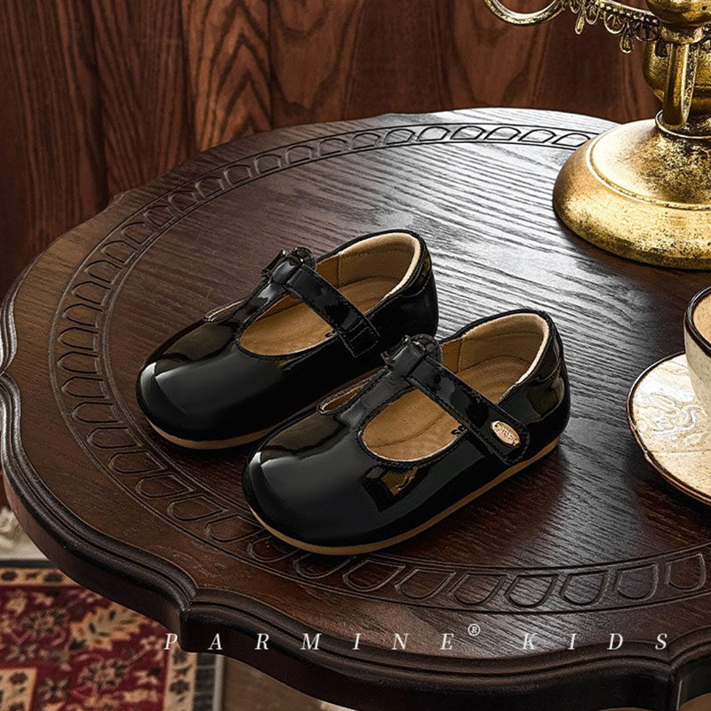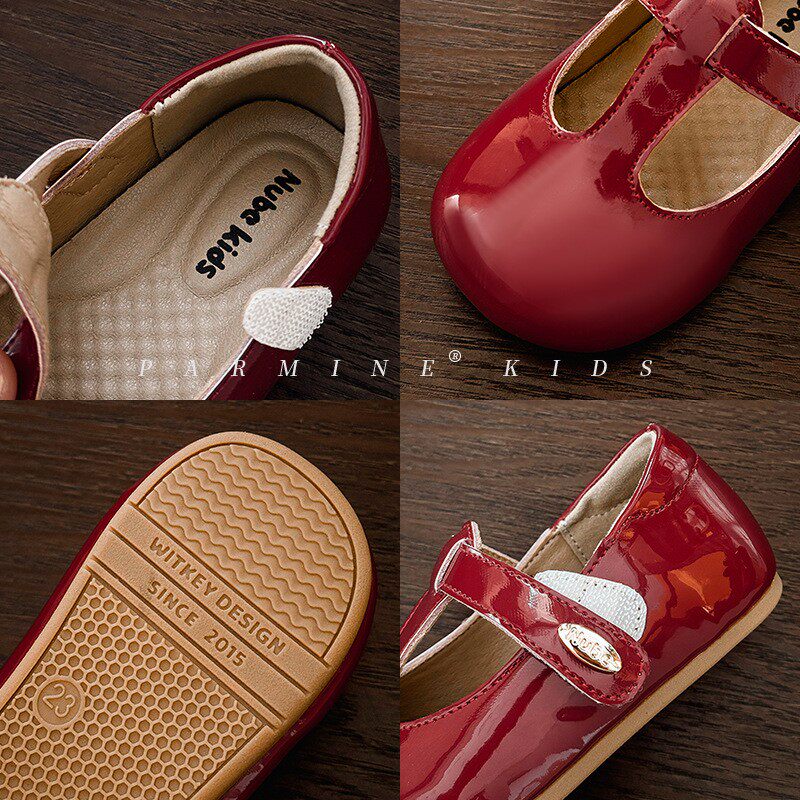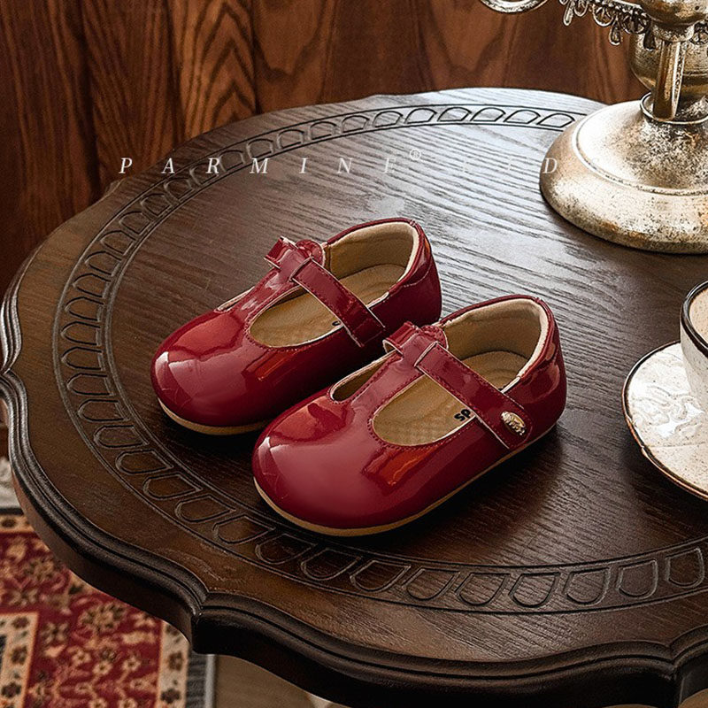 真皮女宝宝酒红色丁字型软底小皮鞋2026春秋新款女小童学步公主鞋
