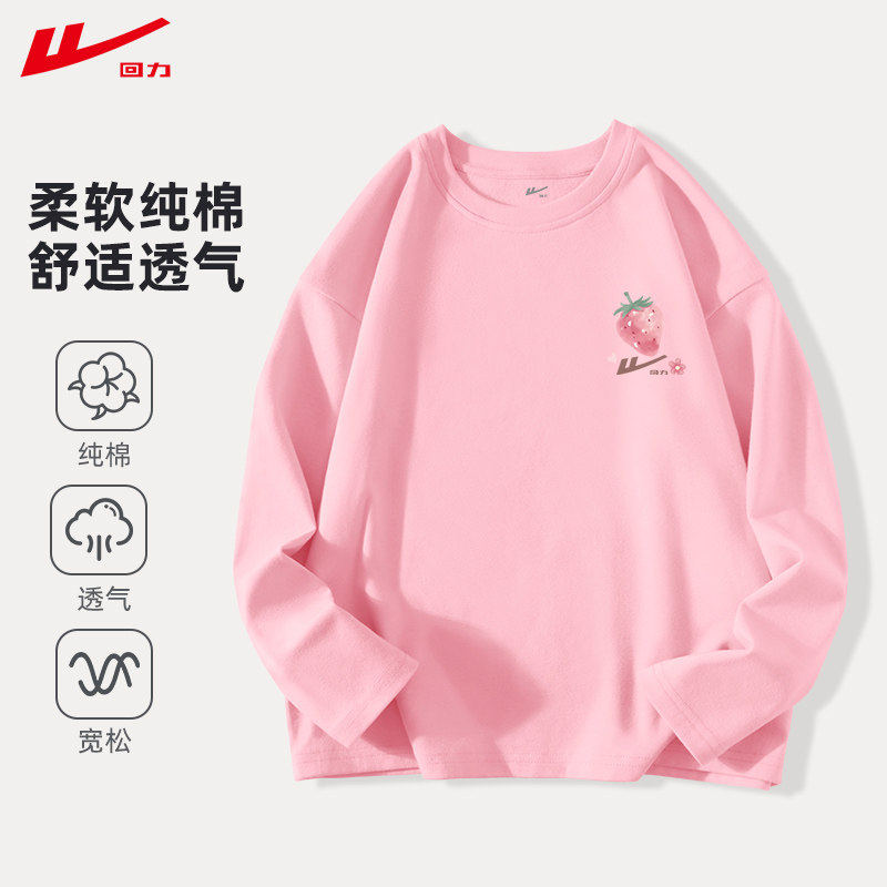 回力儿童长袖t恤春秋款2026新款男童女童薄款纯棉打底衫上衣春装