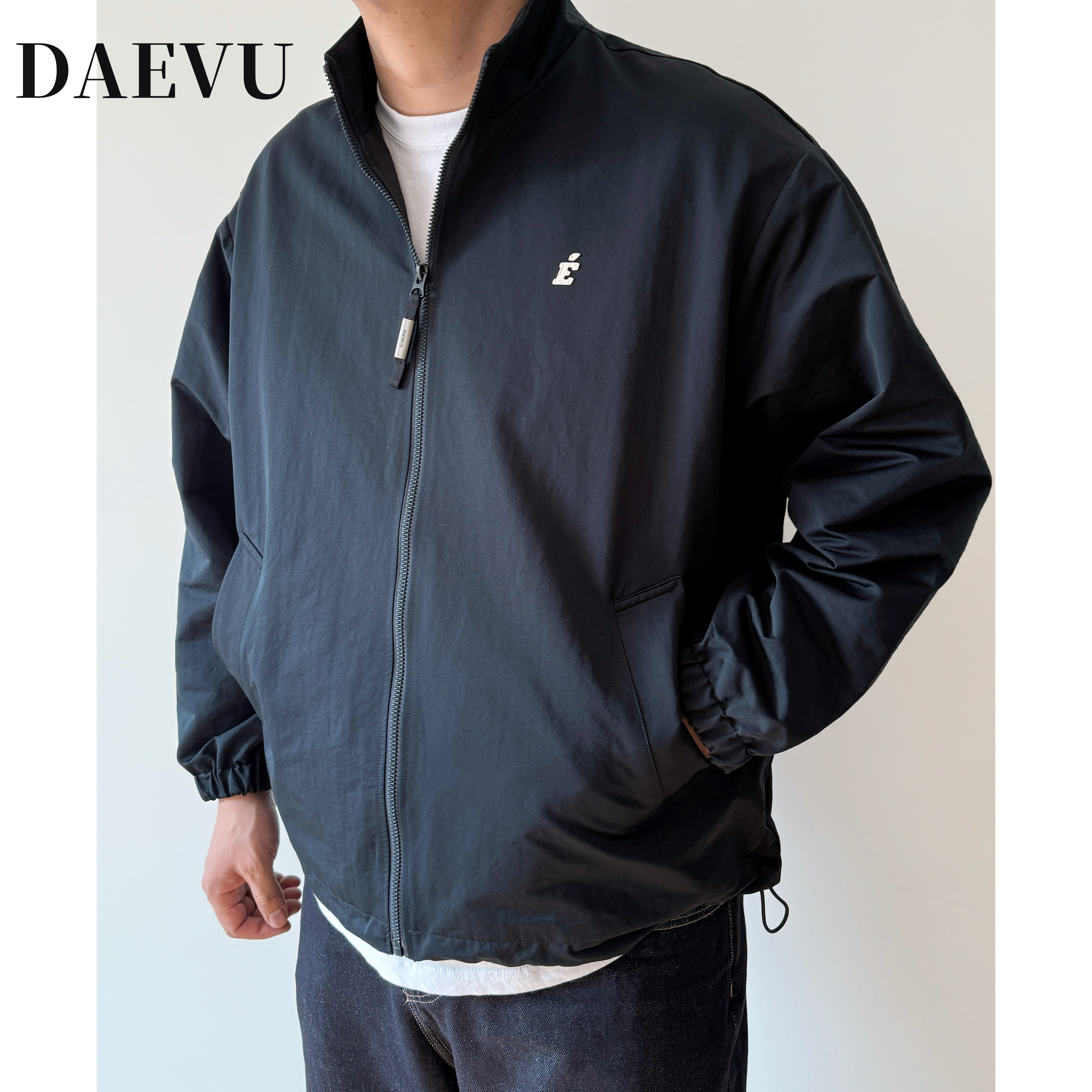 大依无忧大码男装春季藏青色廓版立领夹克加肥加大男款短款外套