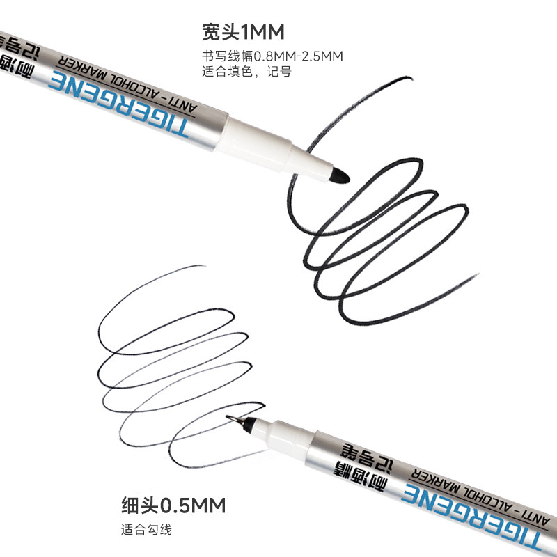Tigergene实验室双头防酒精记号笔防水防油防褪色笔耐酒精马克笔