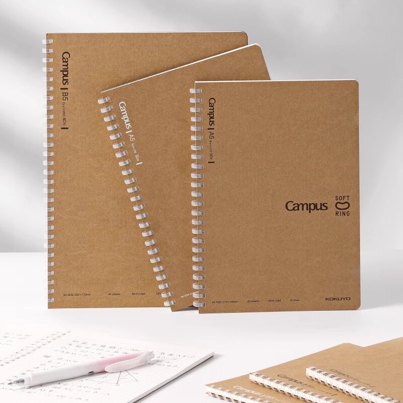日本kokuyo国誉牛皮纸软线圈本campus复古笔记本B5本子不硌手记事本A5学生用横线作业本方格小网格空白本加厚