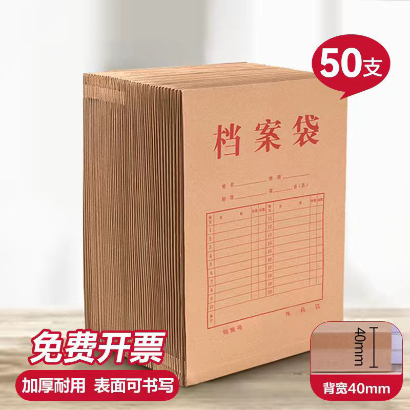 牛皮纸档案袋加厚A4文件袋大容量不易变形资料袋办公用品收纳袋50/100个大号档案袋合同资料文件袋学生档案袋
