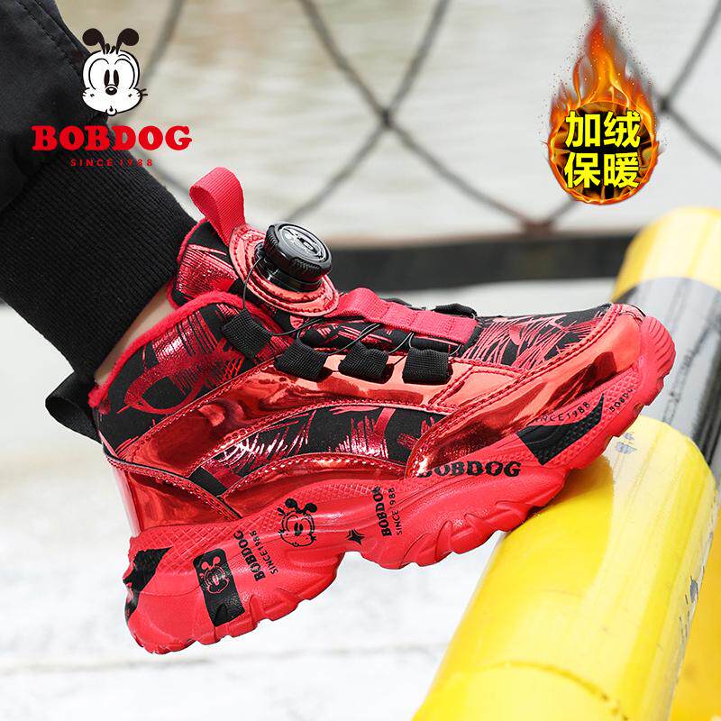 巴布豆2025蛇年本命年红色鞋子女童安可拉红儿童运动鞋男童加绒鞋