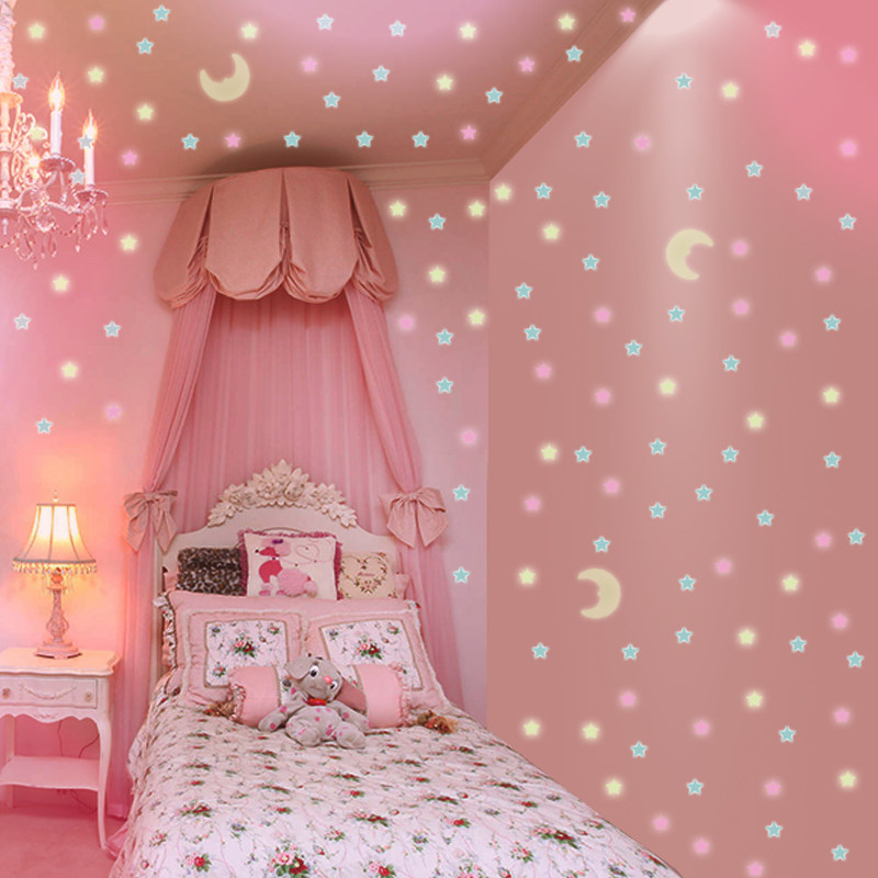 天花板3d立体夜光星星发光儿童房间装饰品卧室自粘墙贴纸荧光贴画