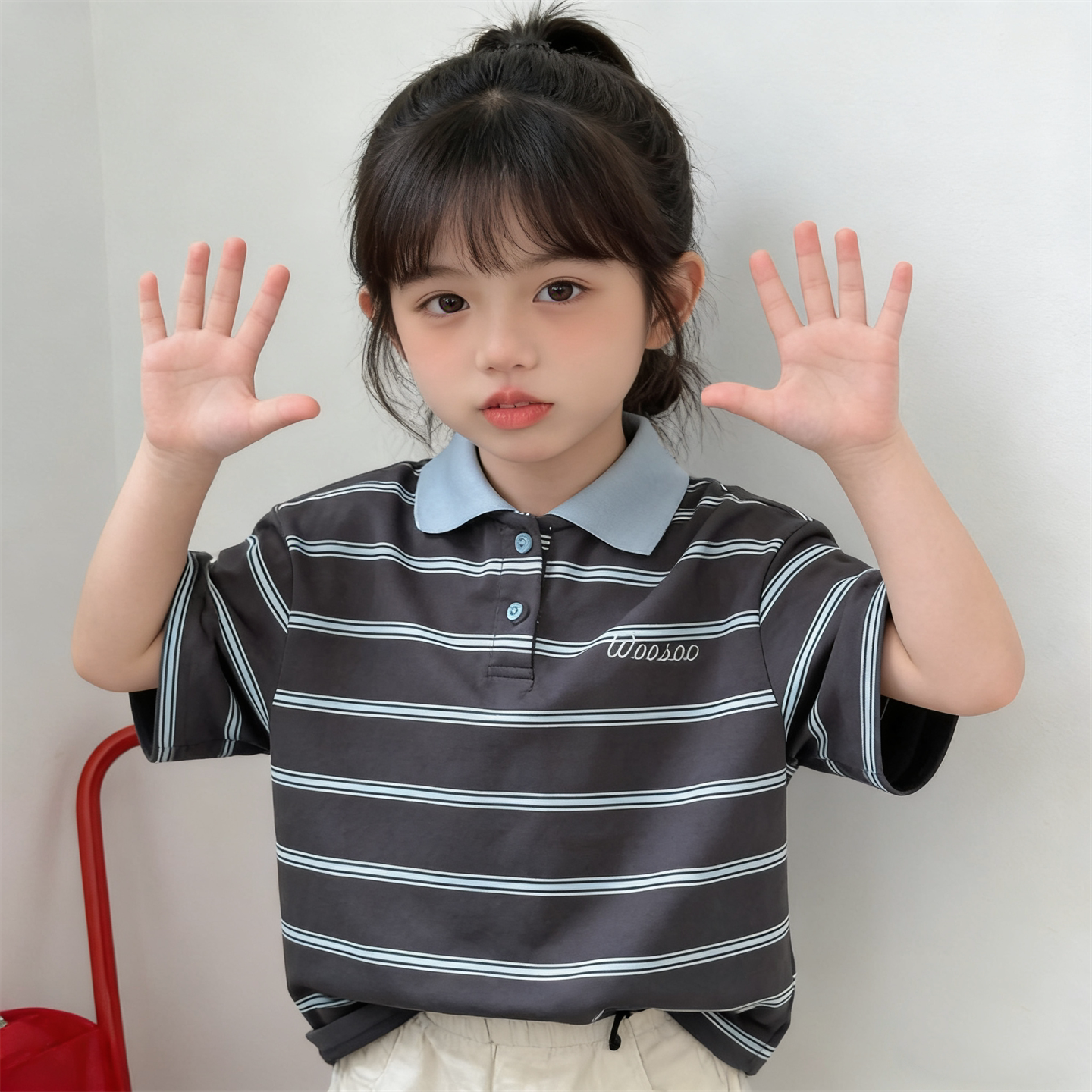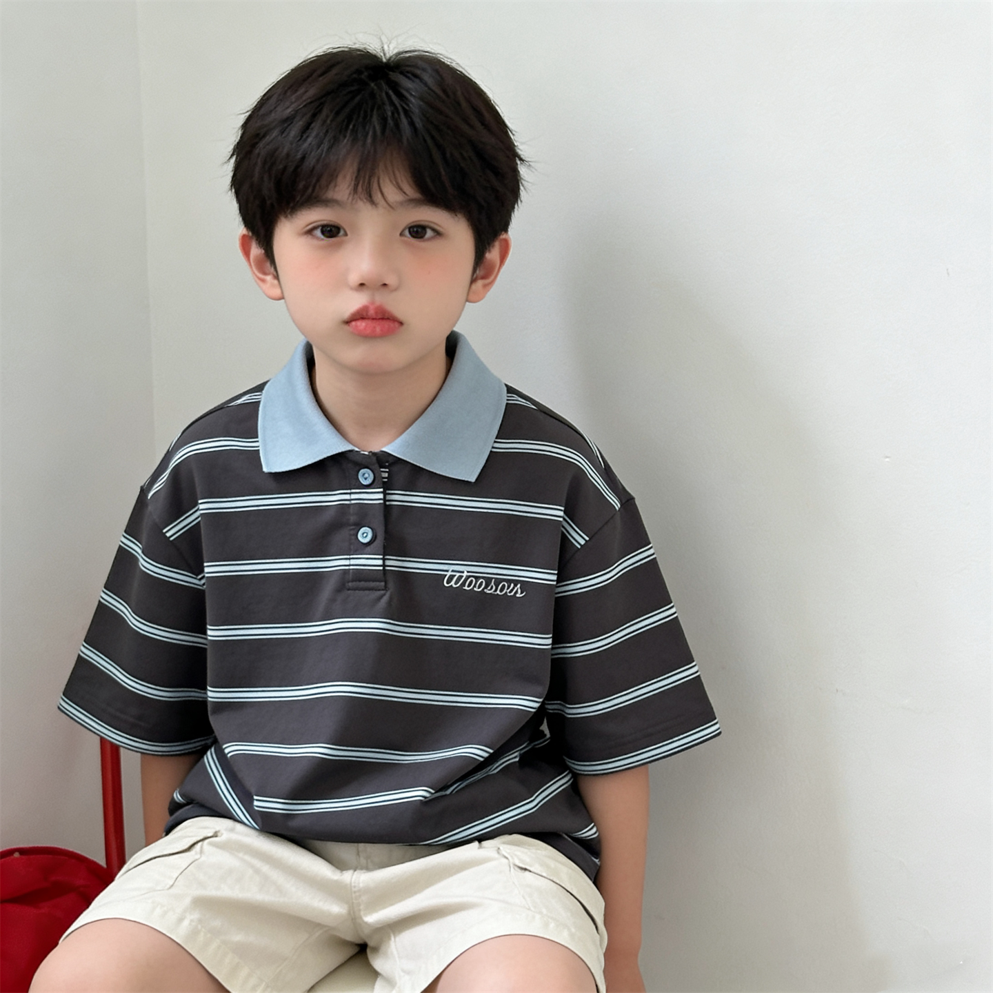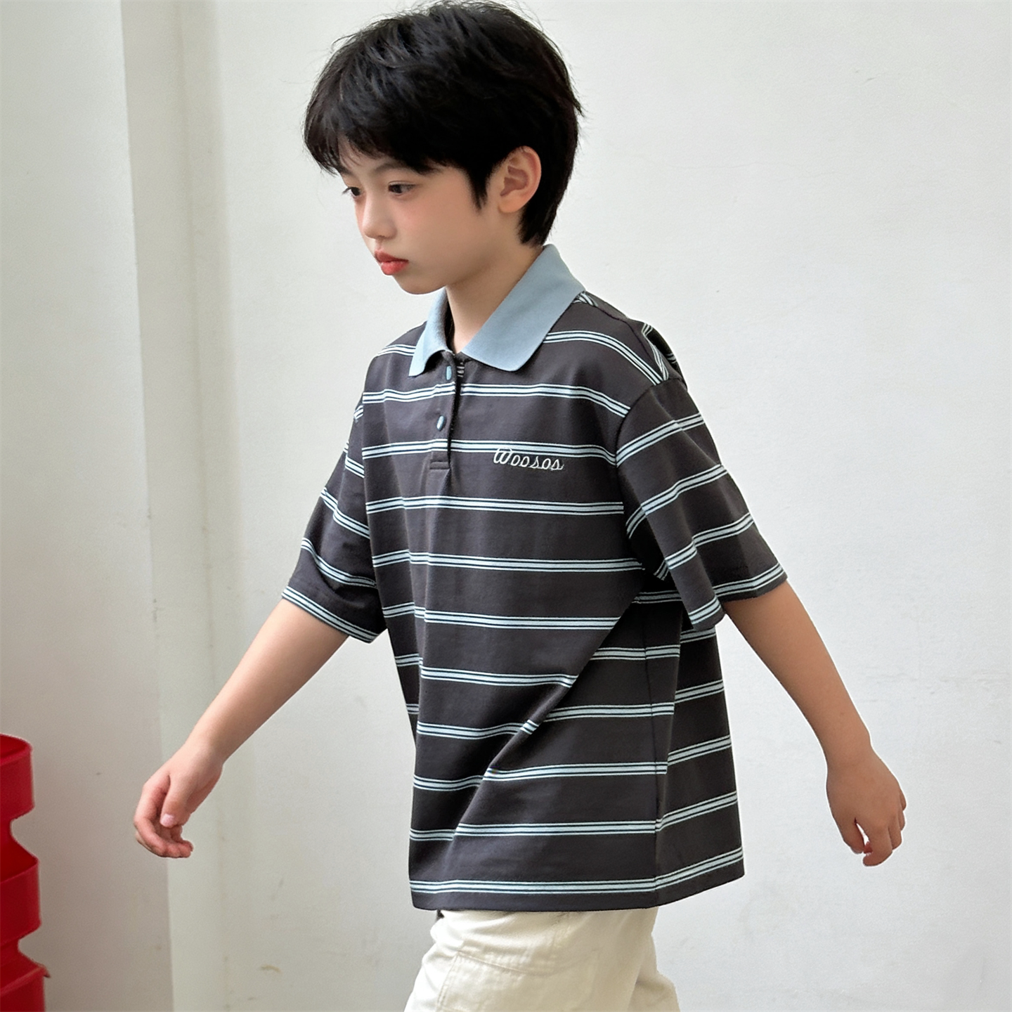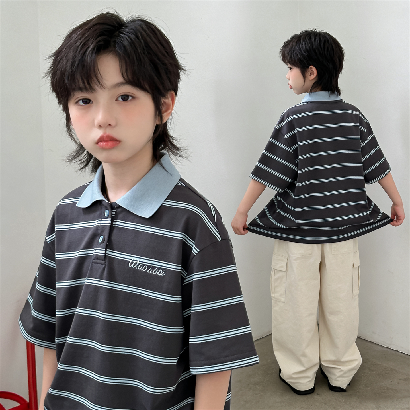 韩版童装夏季新款男女童潮酷撞色宽松休闲条纹POIO衫百搭短袖T恤