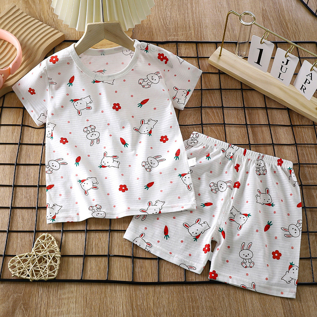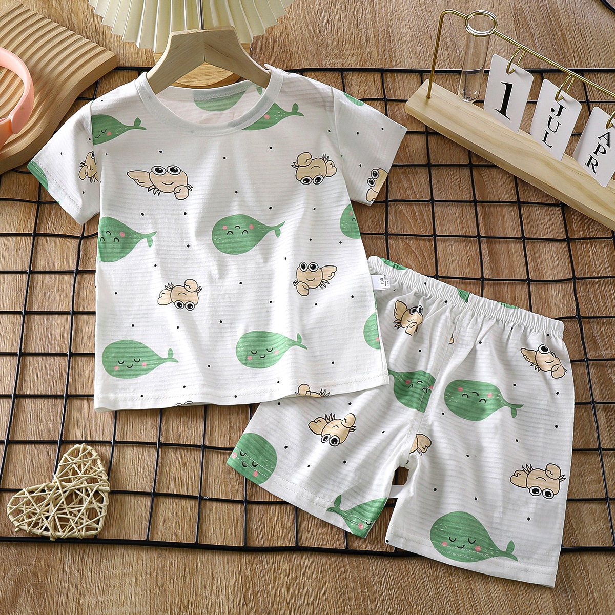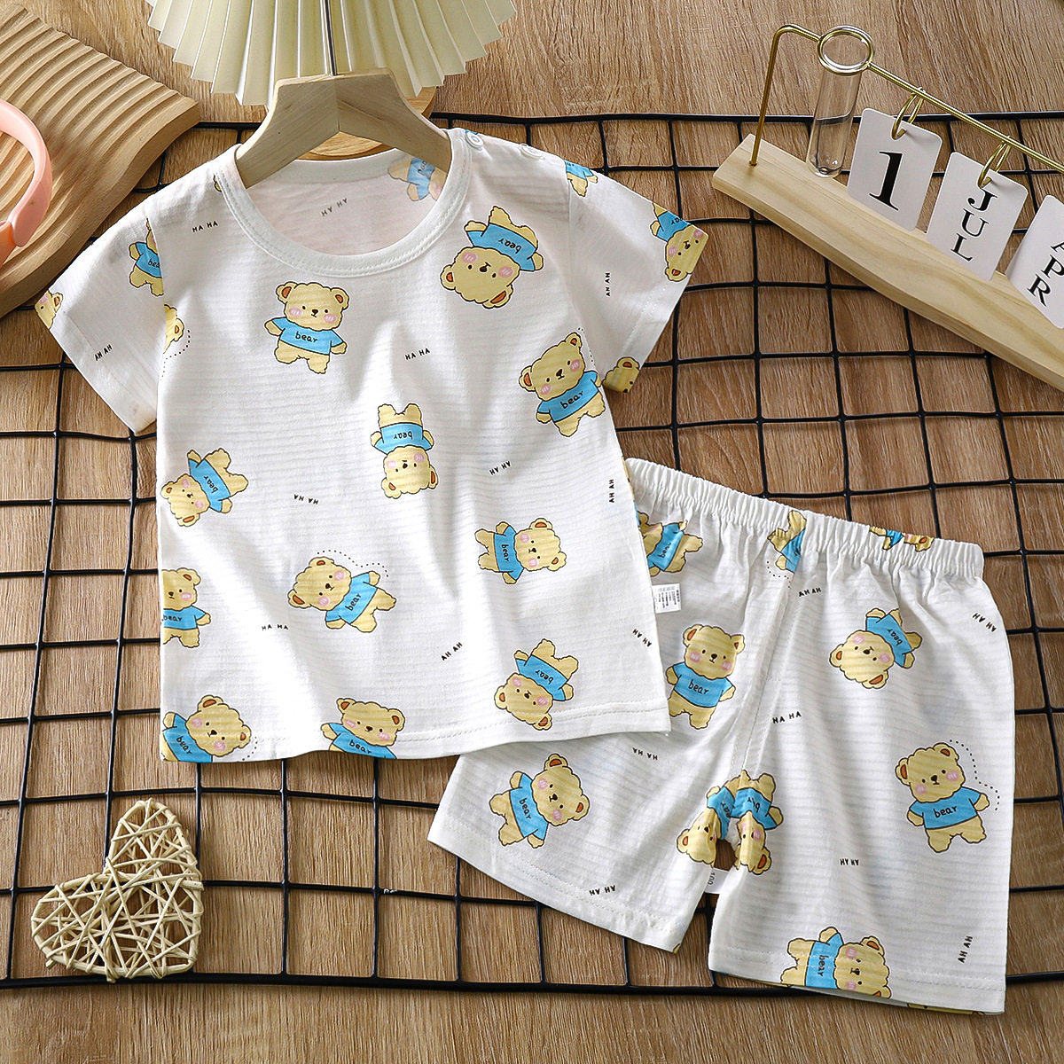 儿童睡衣套装短袖家居服宝宝空调服中小男女童夏天衣服薄款竹节棉